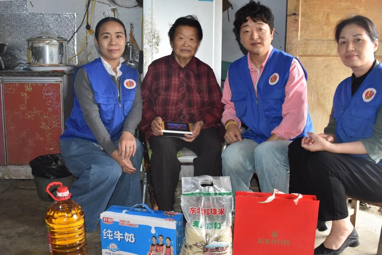 工作人員與志愿者們帶著精心籌備的月餅、米、面、油、牛奶等生活物資,以及專為孩子準備的學習用品,走進孟城村和周徐村的慰問對象家中。大家圍坐在一起,耐心陪老人嘮家常、詢問身體狀況,細致了解孩子的學習與生活情況,用親切的話語驅散他們的孤單。