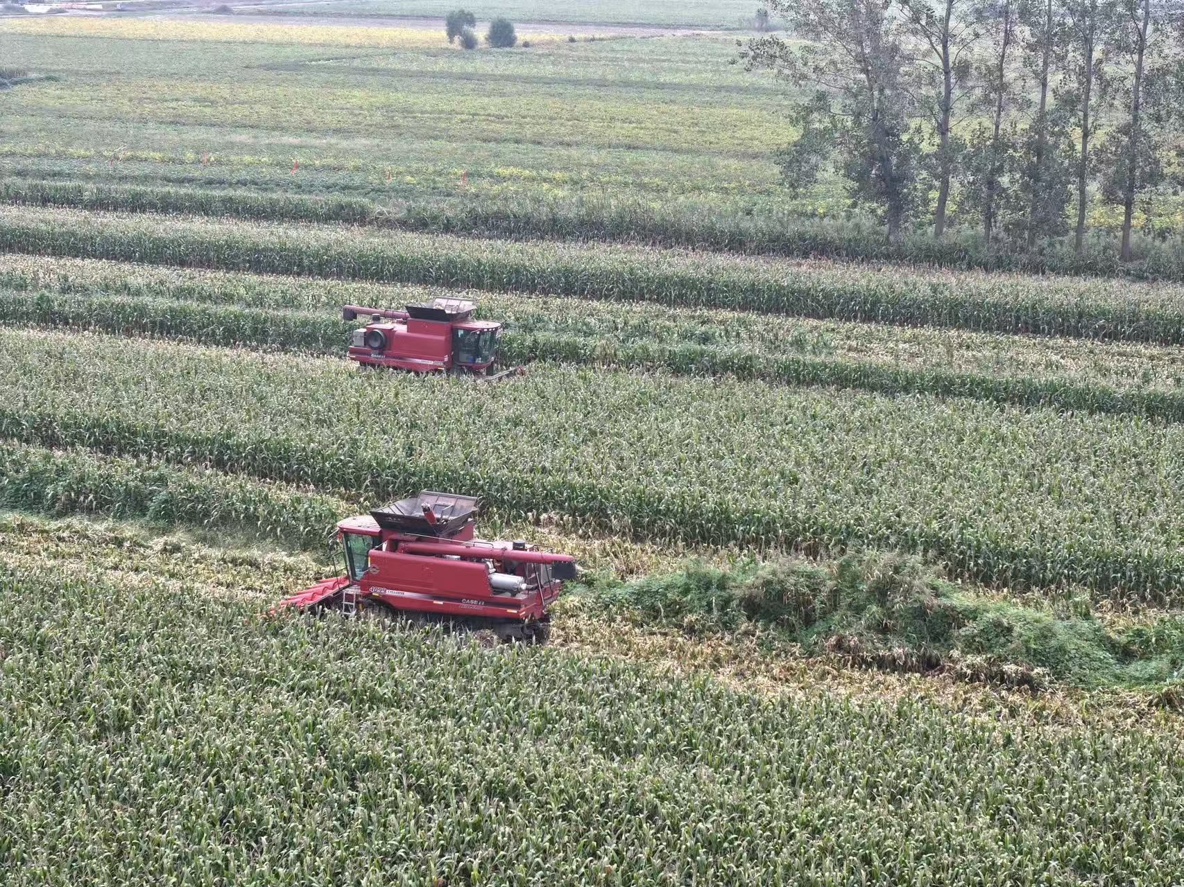 收割機穿梭在玉米地里