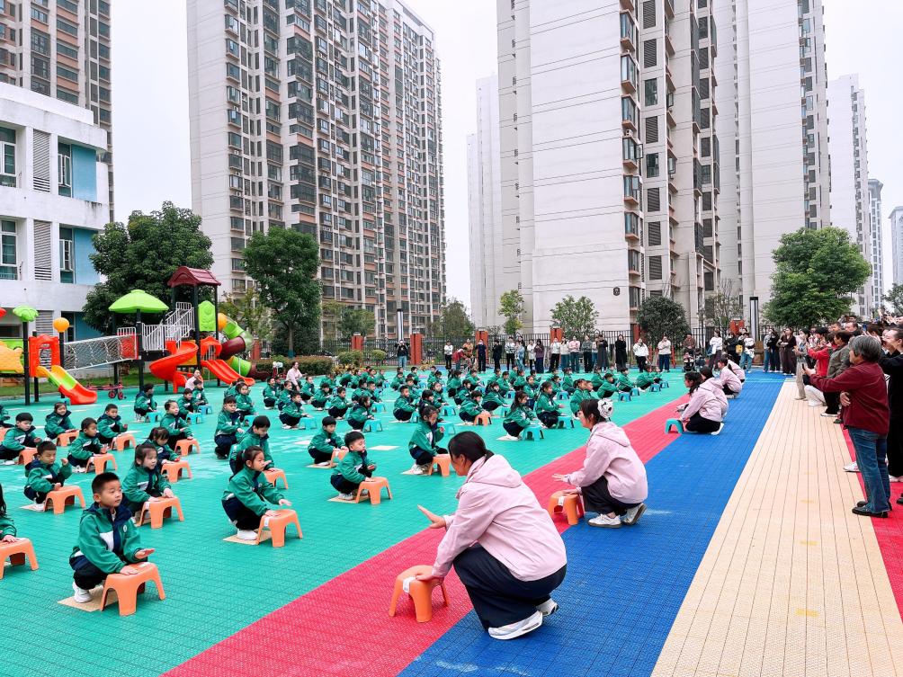賽場風采:萌娃展活力,動作顯專注。隨著音樂響起,各班幼兒依次登場。孩子們身著統(tǒng)一服裝,精神飽滿地完成每個動作。中大班幼兒手持彩色道具,跟著節(jié)奏變換隊形,笑容洋溢;小班萌娃們雖動作稍顯稚嫩,卻眼神專注,努力跟上節(jié)拍,憨態(tài)可掬的模樣引得家長們頻頻舉起手機記錄。現(xiàn)場掌聲與笑聲交織,成為秋日里最溫暖的旋律。