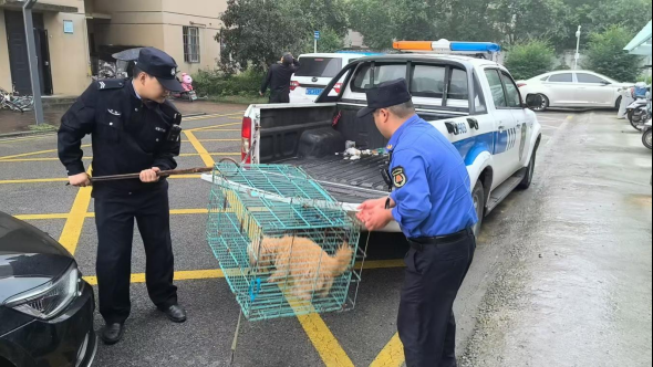 在清華苑、圣邦·幸福家園小區及周邊區域,執法人員重點排查散養犬只隱患。行動中發現,部分居民未牽繩遛犬,個別流浪犬在小區綠化帶內聚集,存在咬傷行人風險。執法人員使用大號網兜等專業工具,在確保安全的前提下,對4只散養犬進行依法捕捉,并配合公安局移交至犬只收容機構進行統一收容,用行動守護市民的“腳下安全”。