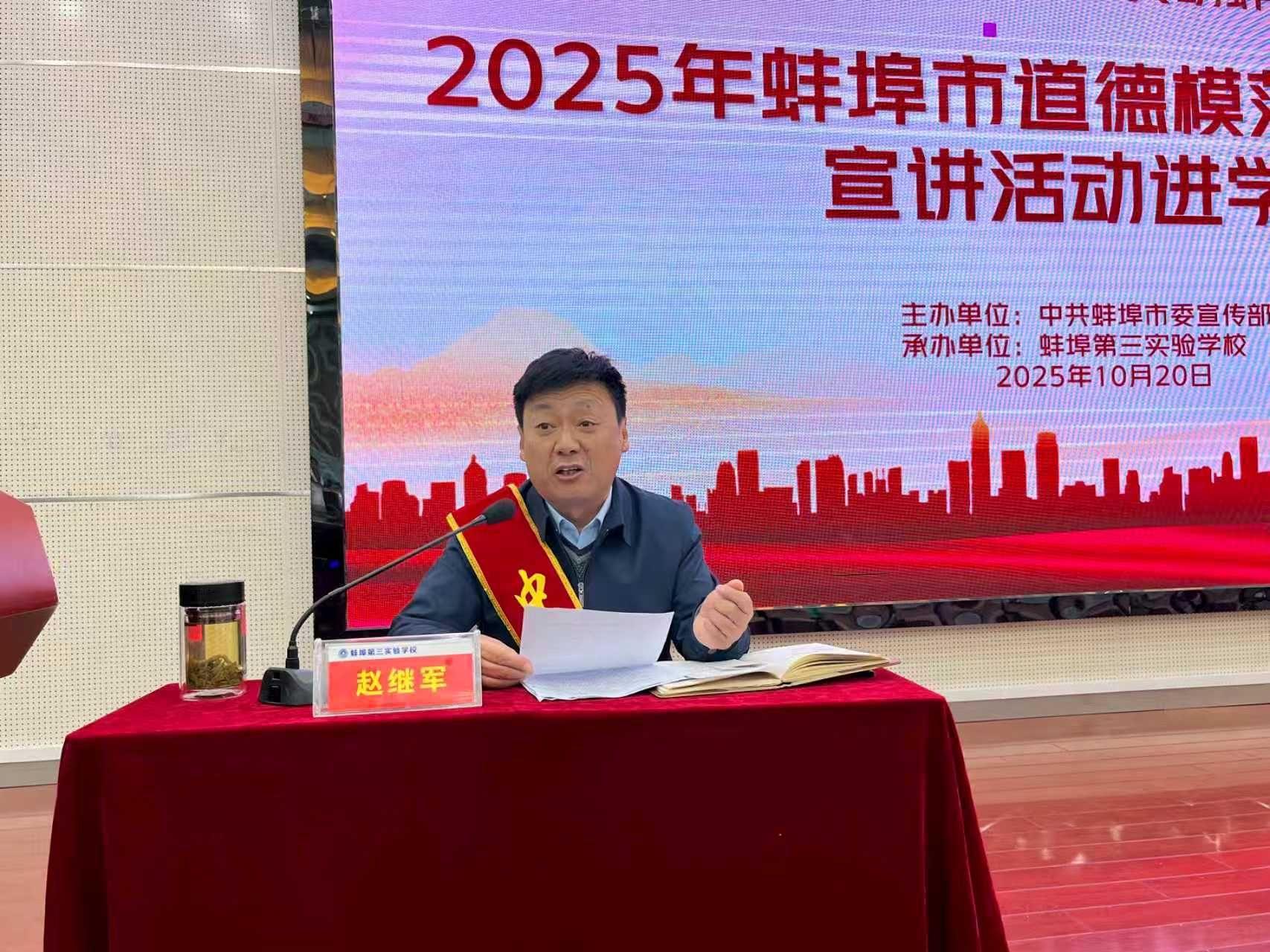 近日,2025年蚌埠市道德模范、身邊好人宣講活動走進蚌埠第三實驗學校,中國好人趙繼軍為師生們帶來了一堂關于“愛與成長”的公益課。