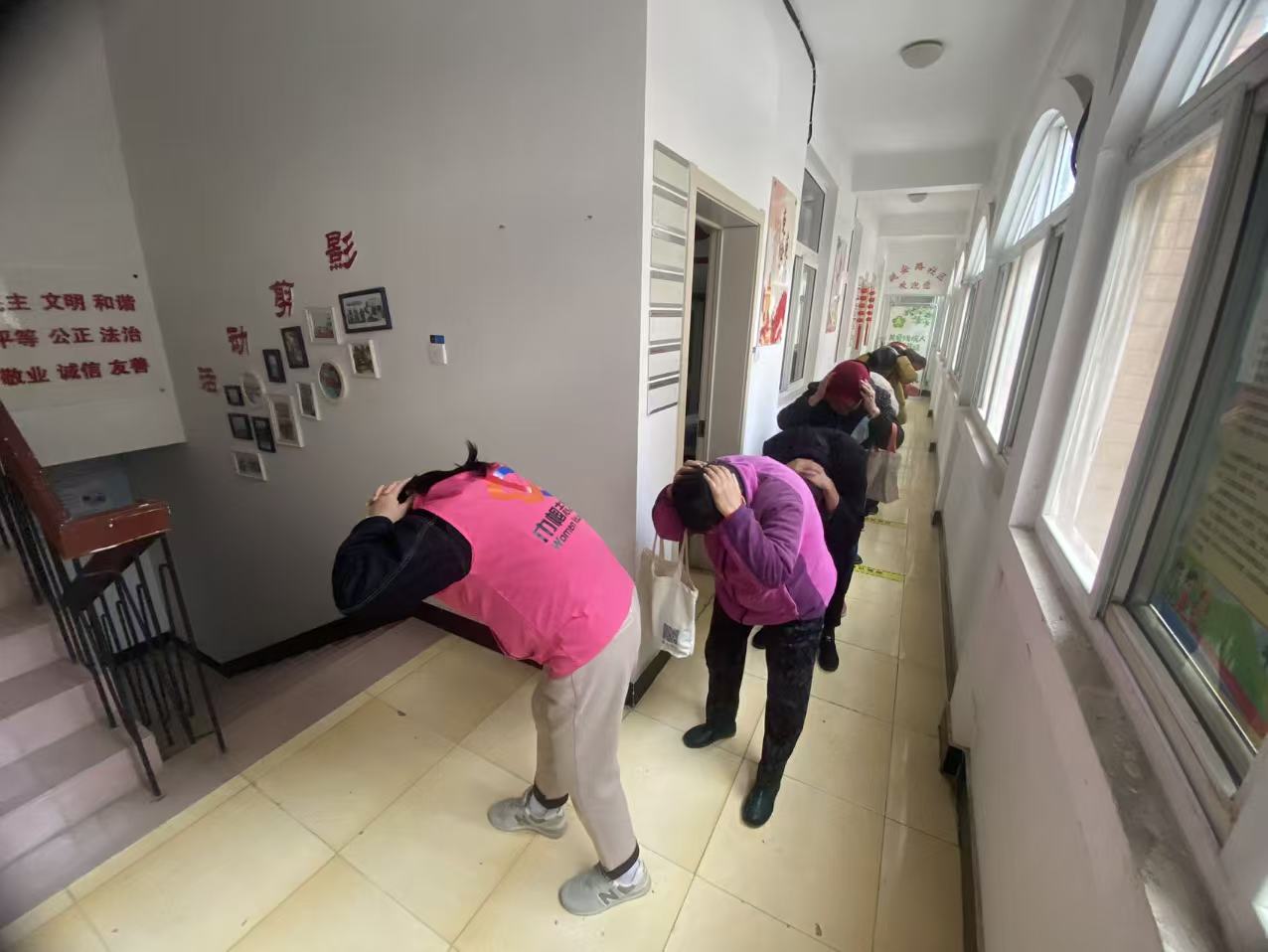 活動的核心環(huán)節(jié)包括主題宣講和應(yīng)急演練。宣講開始延安路社區(qū)志愿者系統(tǒng)講解了“韌性社區(qū)”的核心理念,強(qiáng)調(diào)了基礎(chǔ)設(shè)施、生態(tài)環(huán)境和社會支持系統(tǒng)的重要性。隨后的防震逃生演練中,隨著警報(bào)聲響起,居民們在志愿者的指引下,迅速學(xué)習(xí)并實(shí)踐了“伏地、遮擋、手抓牢”的避險(xiǎn)動作,并有序地疏散至社區(qū)指定的緊急避難場所。通過模擬真實(shí)地震場景,居民將理論知識有效轉(zhuǎn)化為實(shí)際操作能力。