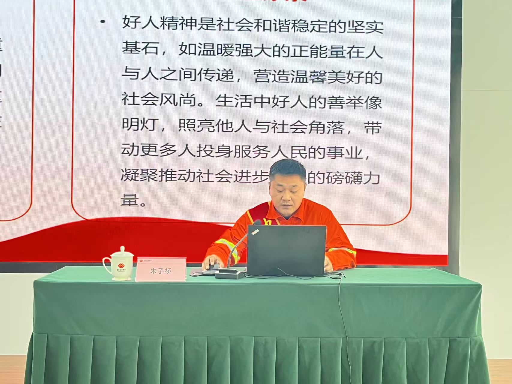 近日,由中共蚌埠市委宣傳部主辦的“禹風厚德 文明蚌埠”——2025年蚌埠市道德模范、身邊好人宣講活動,走進國能蚌埠發電有限公司,中國好人、蚌埠市蚌固一級公路養路工人朱子橋為在場的職工帶來了一場“走心”的宣講。