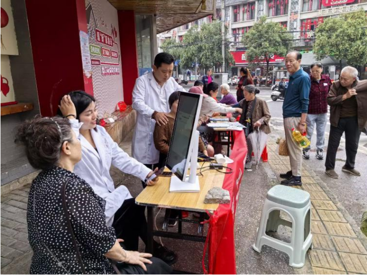 義診現(xiàn)場,醫(yī)護人員身著白大褂,耐心為每一位居民提供服務(wù)。一方面,運用專業(yè)醫(yī)療設(shè)備為居民檢查身體,細(xì)致解讀檢查結(jié)果,針對不同健康狀況給出個性化建議;另一方面,開展問診服務(wù),仔細(xì)詢問居民身體狀況,結(jié)合健康宣傳資料普及養(yǎng)生保健、疾病預(yù)防知識。從為居民檢測身體指標(biāo)到耐心解答健康疑惑,醫(yī)護人員以專業(yè)的醫(yī)術(shù)和貼心的服務(wù),贏得了居民的一致好評,讓大家在家門口就感受到了醫(yī)療服務(wù)的溫暖與便捷。
