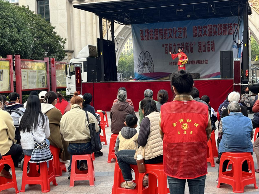 為進一步發揮新時代文明實踐陣地作用,不斷豐富群眾文化生活,由中共蚌埠市委宣傳部、市精神文明建設辦公室精心策劃的“百場文藝進所站”演出活動,于10月27日走進金恒社區新時代文明實踐站,為居民朋友帶來“泗州戲”等精彩的文藝演出。(鄧婷婷)