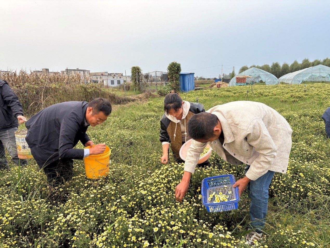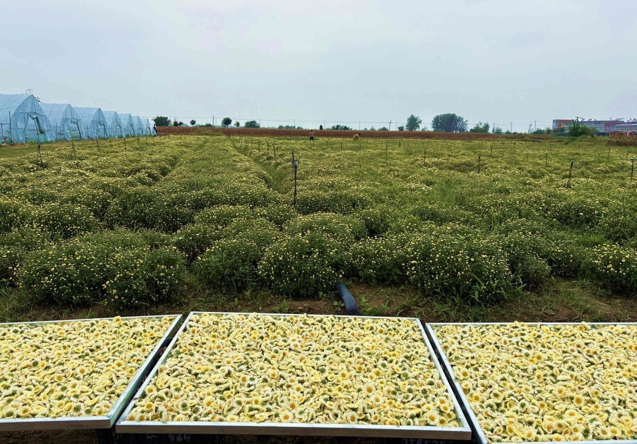 技術+市場雙保障,產業發展底氣足。為確保首種成功,曹郢村為這二十畝菊花上了“雙保險”。技術上,村里實施統一精細管理,并邀請農業專家全程指導,確保種植技術過硬;市場上,提前與相關企業簽訂保底回購協議。采收后的菊花經標準化烘干處理,直接由企業收購,徹底化解了“種不好、賣不掉”的擔憂。