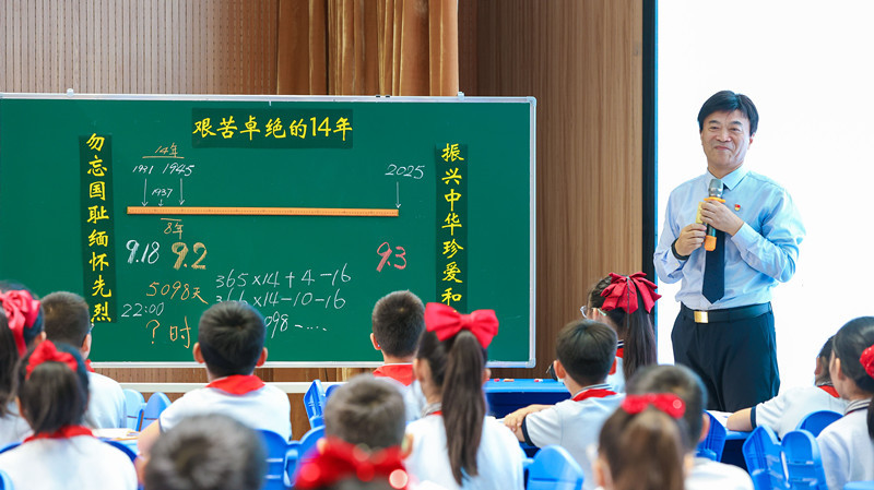 現(xiàn)場,合肥市大通路小學老師李云執(zhí)教《借百分數(shù)譴責“731”》,從人體中的水分占體重的百分比這一知識點,引發(fā)、證實、揭露731部隊的殘酷暴行,激勵學生銘記歷史,奮發(fā)自強。江蘇省南通師范學校第三附屬小學老師鄧蕓蕓帶來的《數(shù)說游擊戰(zhàn)》,用一場跨越兩千年的智慧回響,展現(xiàn)軍事思想的血脈傳承,自主探究抗戰(zhàn)相持階段采用游擊戰(zhàn)的合理性,體會游擊戰(zhàn)的價值。