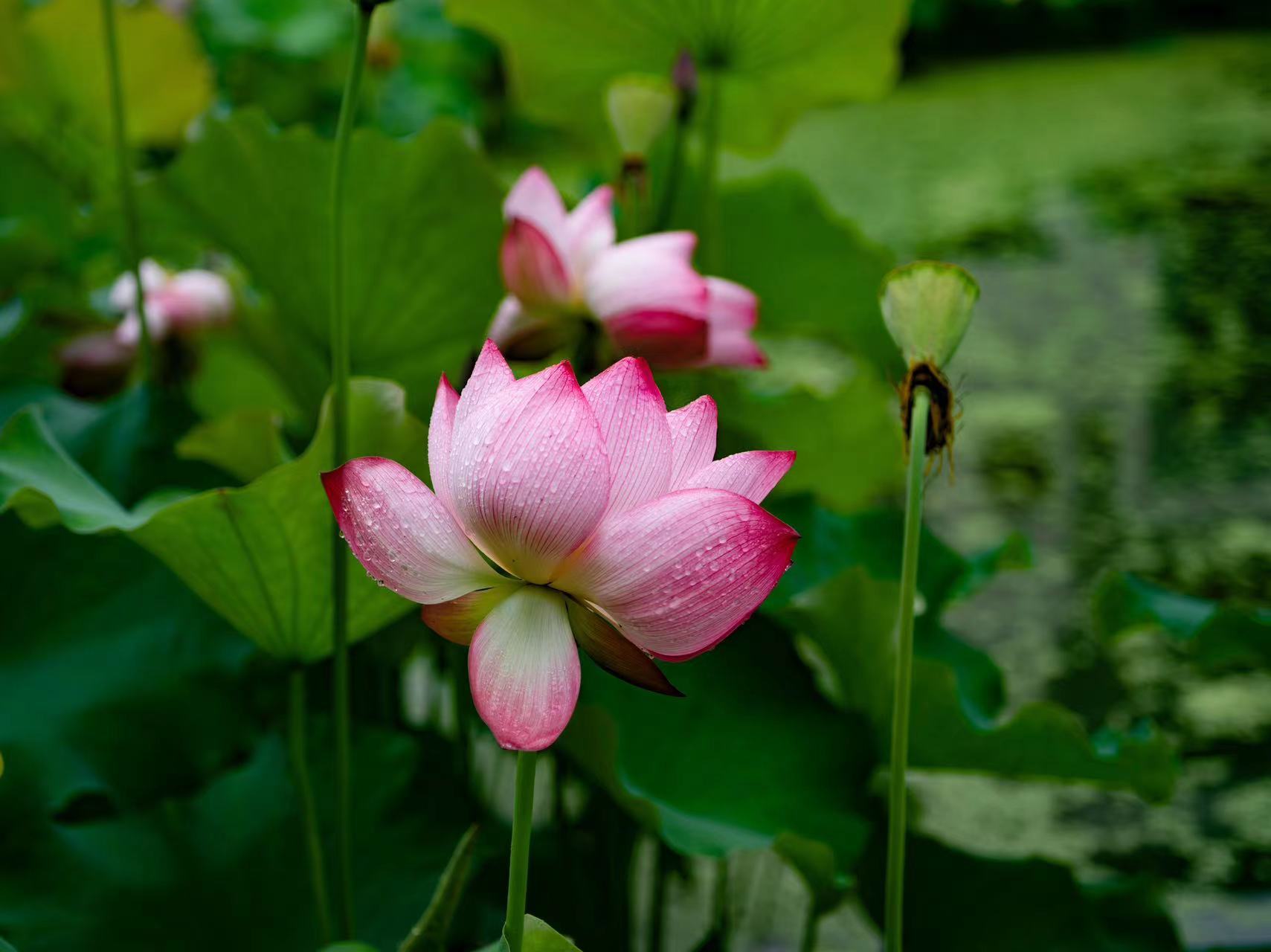 一場夏雨過后,在安徽省蚌埠市懷遠縣的城市公園池塘內,盛開的荷花更顯嬌艷,陣陣清香沁人心脾。