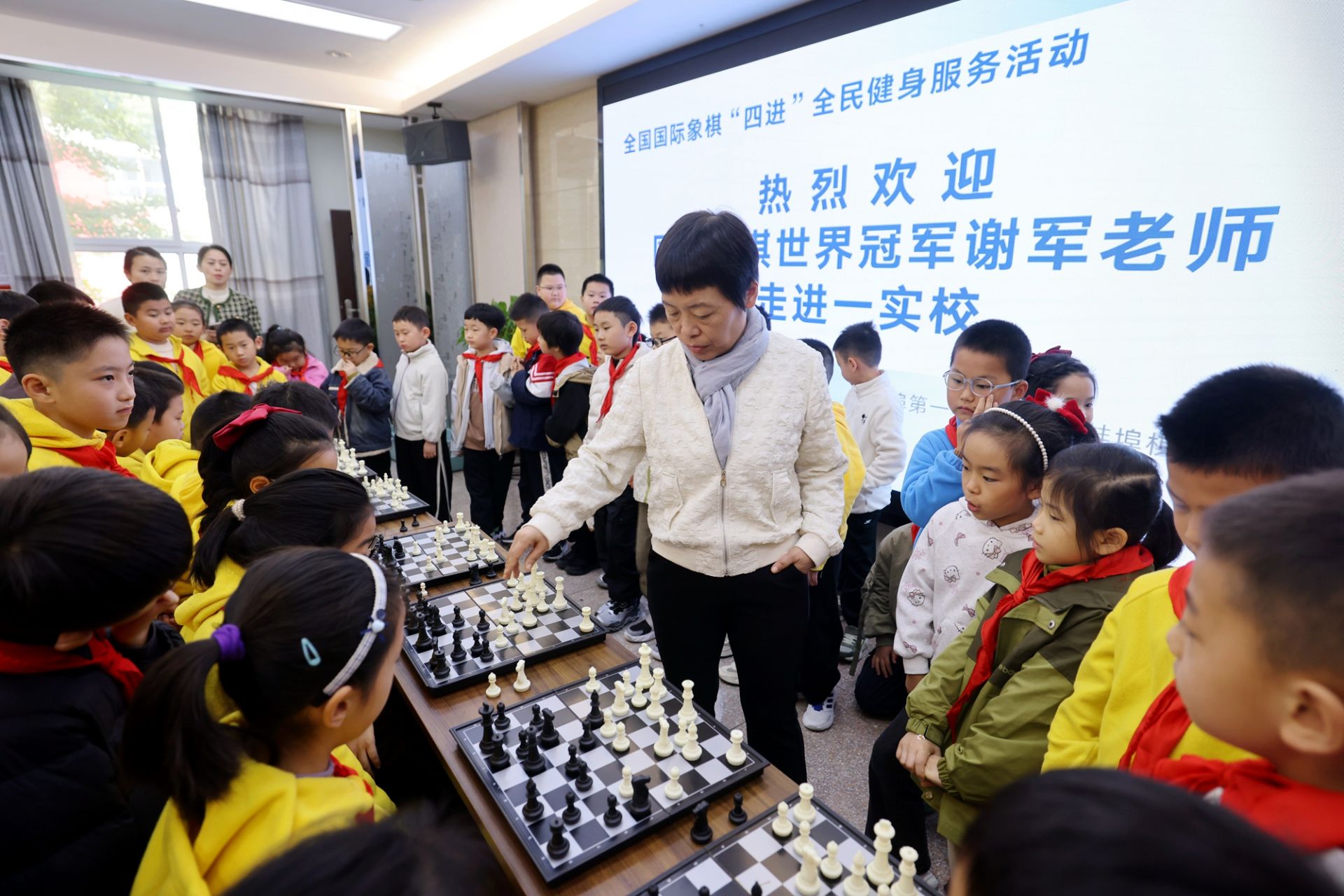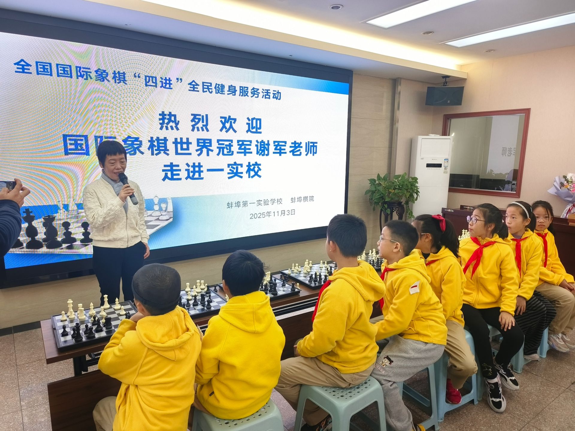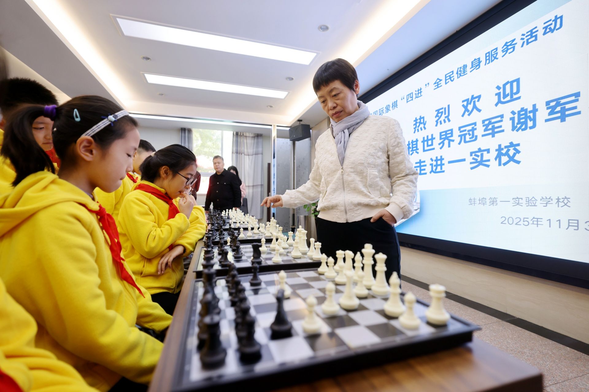 11月3日上午,全國國際象棋“四進(jìn)”全民健身志愿服務(wù)活動在安徽省蚌埠第一實(shí)驗(yàn)學(xué)校舉行。四屆女子國際象棋世界冠軍、世界國際象棋聯(lián)合會副主席、中國國際象棋協(xié)會會長謝軍正與該校學(xué)生展開“車輪戰(zhàn)”對弈,1對多的實(shí)戰(zhàn)交流場景,成為全國國際象棋“四進(jìn)”(進(jìn)學(xué)校、進(jìn)社區(qū)、進(jìn)機(jī)關(guān)、進(jìn)養(yǎng)老機(jī)構(gòu))全民健身志愿服務(wù)活動落地蚌埠的生動注腳。全國國際象棋“四進(jìn)”(進(jìn)學(xué)校、進(jìn)社區(qū)、進(jìn)機(jī)關(guān)、進(jìn)養(yǎng)老機(jī)構(gòu))全民健身志愿服務(wù)活動由國家體育總局棋牌管理中心主辦,安徽省象棋運(yùn)動協(xié)會承辦,蚌埠棋院、蚌埠市國際象棋協(xié)會執(zhí)行。作為此次活動的核心環(huán)節(jié),“車輪戰(zhàn)”吸引了校際賽中脫穎而出的8名小棋手參與。對局時(shí),謝軍時(shí)而俯身觀察學(xué)生布局,時(shí)而在棋盤旁停留思考,用溫和的語氣提醒小棋手“注意子力聯(lián)動”;對局結(jié)束后,她又針對每盤棋的關(guān)鍵節(jié)點(diǎn)逐一復(fù)盤,從戰(zhàn)術(shù)選擇到邏輯判斷耐心拆解,將專業(yè)棋藝知識轉(zhuǎn)化為學(xué)生易懂的實(shí)戰(zhàn)技巧。據(jù)了解,蚌埠市近年來持續(xù)推進(jìn)國際象棋進(jìn)校園,目前已有50余所學(xué)校將其納入校本課程,蚌埠第一實(shí)驗(yàn)學(xué)校更是憑借系統(tǒng)的棋類教學(xué),培養(yǎng)出多名在省級、國家級青少年賽事中獲獎的小棋手。此次活動的開展,也標(biāo)志著全國國際象棋“四進(jìn)”全民健身志愿服務(wù)活動在安徽省的又一次深度落地。安徽省棋院相關(guān)負(fù)責(zé)人表示,將總結(jié)蚌埠的經(jīng)驗(yàn)做法,后續(xù)在全省范圍內(nèi)推廣“冠軍+基層”的普及模式,讓國際象棋成為助力全民健身、促進(jìn)青少年全面發(fā)展的重要載體。