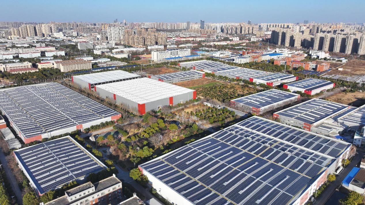 俯瞰蚌埠高新區(qū)工廠屋頂?shù)墓夥濉?蚌埠高新區(qū)管委會(huì)黨政辦供圖