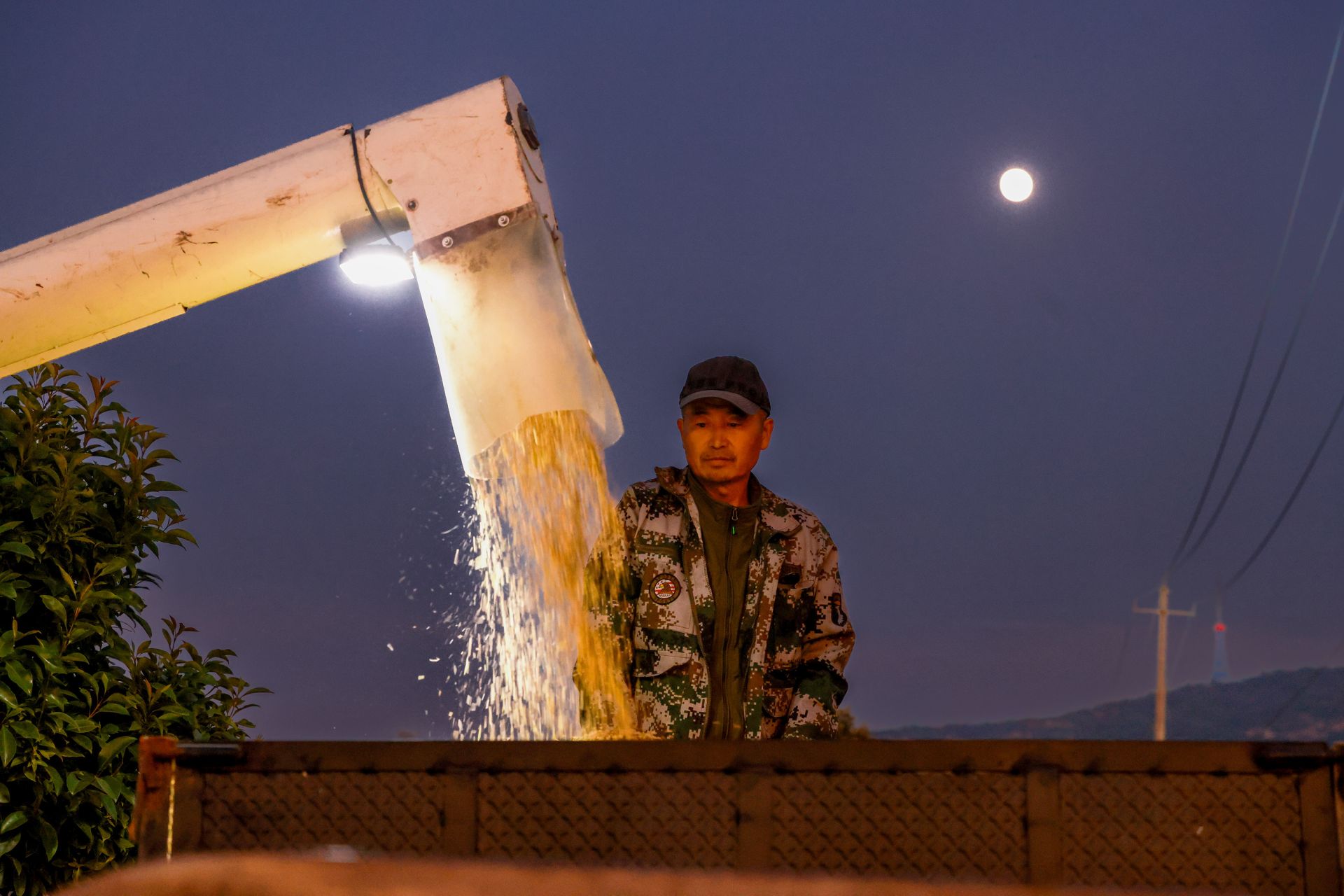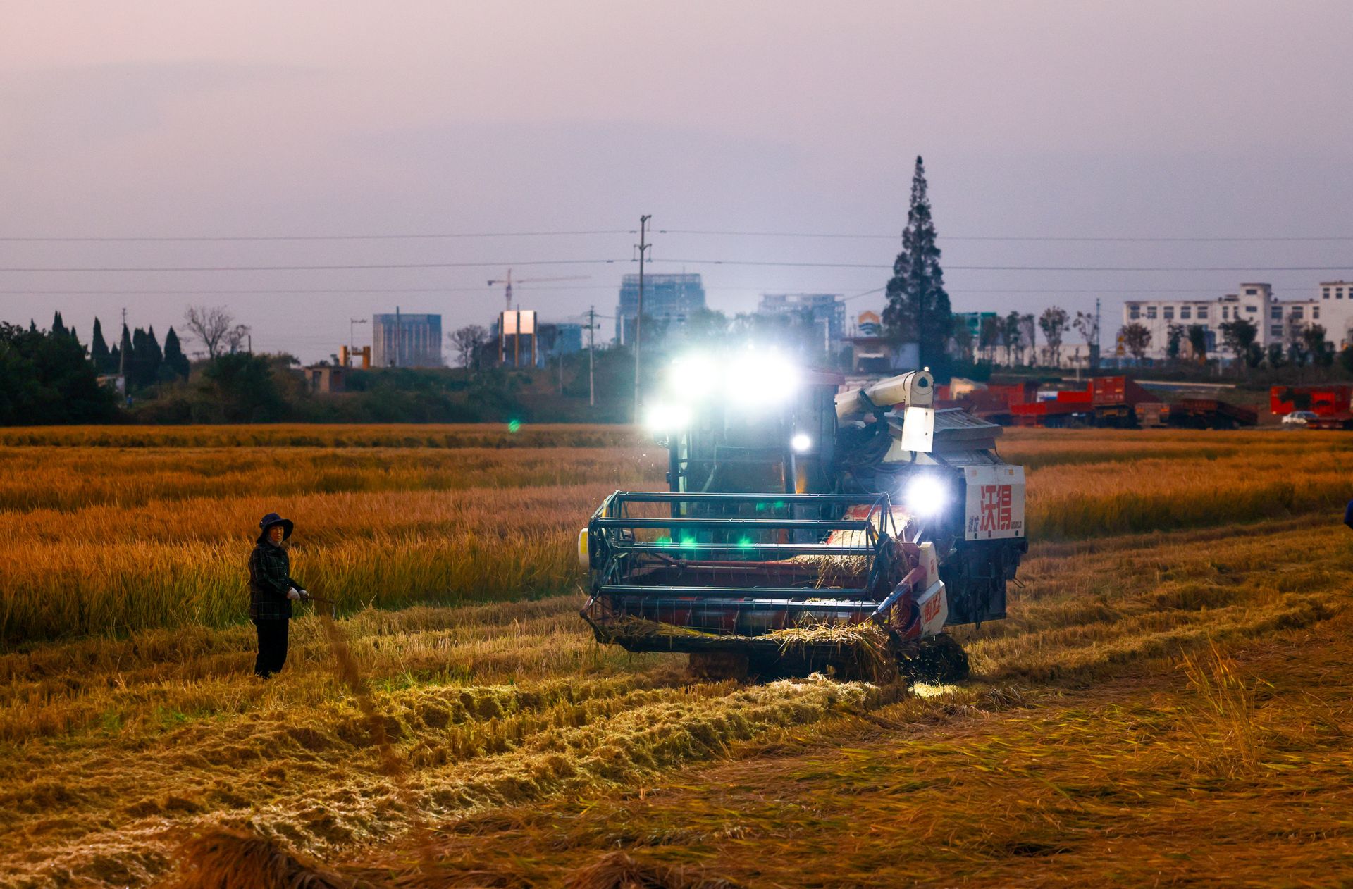稻浪翻金,搶收搶種刻不容緩。安徽省蚌埠市懷遠(yuǎn)縣的田間地頭,收割機(jī)轟鳴穿梭,手工收割的農(nóng)人彎腰揮鐮,快慢之間,都是對每一粒稻谷的珍視。從晨光熹微到星月當(dāng)空,忙碌的身影從未停歇。他們與時間賽跑,只為將豐收穩(wěn)穩(wěn)攥在手中。這日夜不停地?fù)屖請D景,藏著最質(zhì)樸的辛勞,也盛著對顆粒歸倉的篤定期盼。
