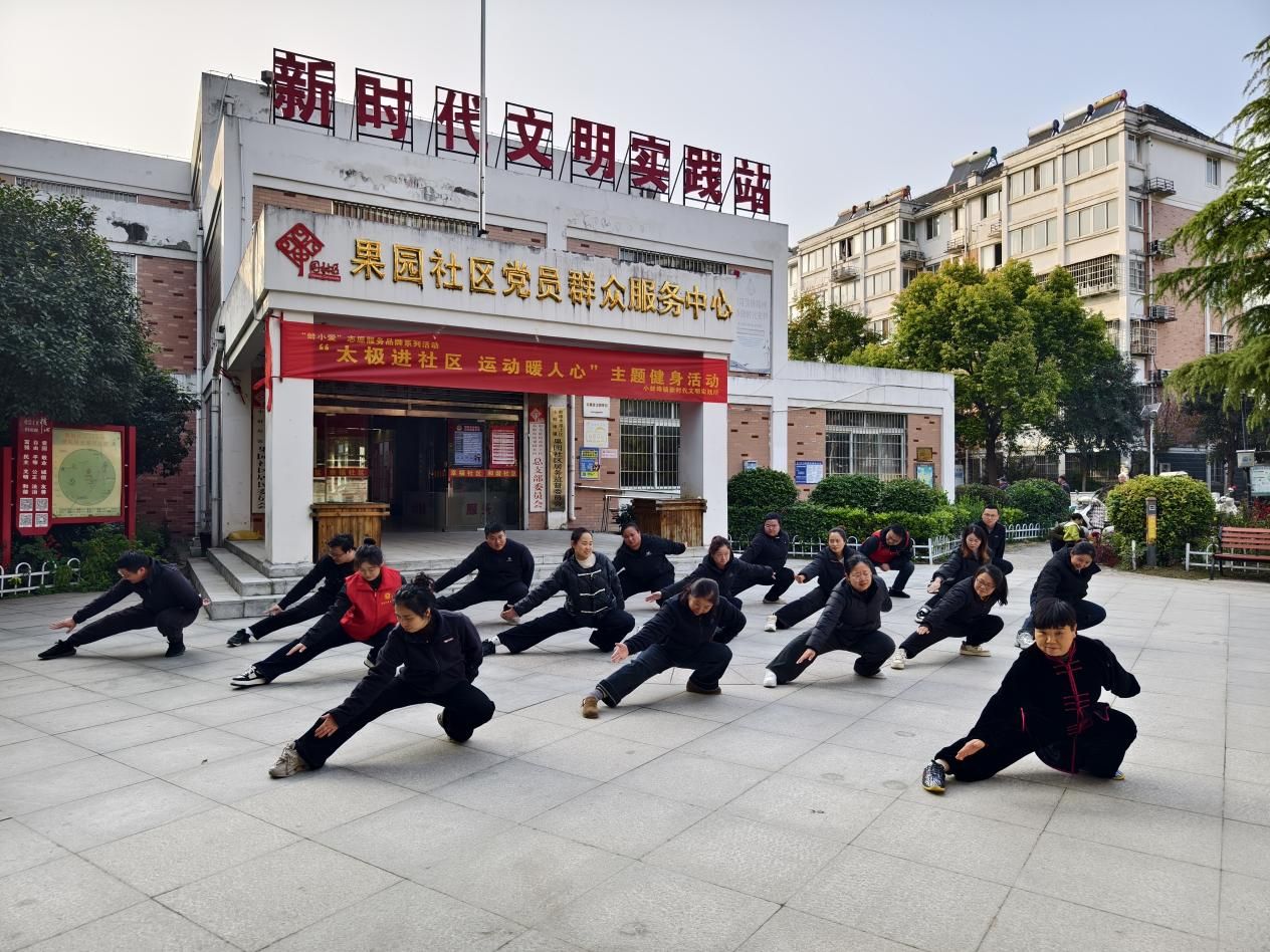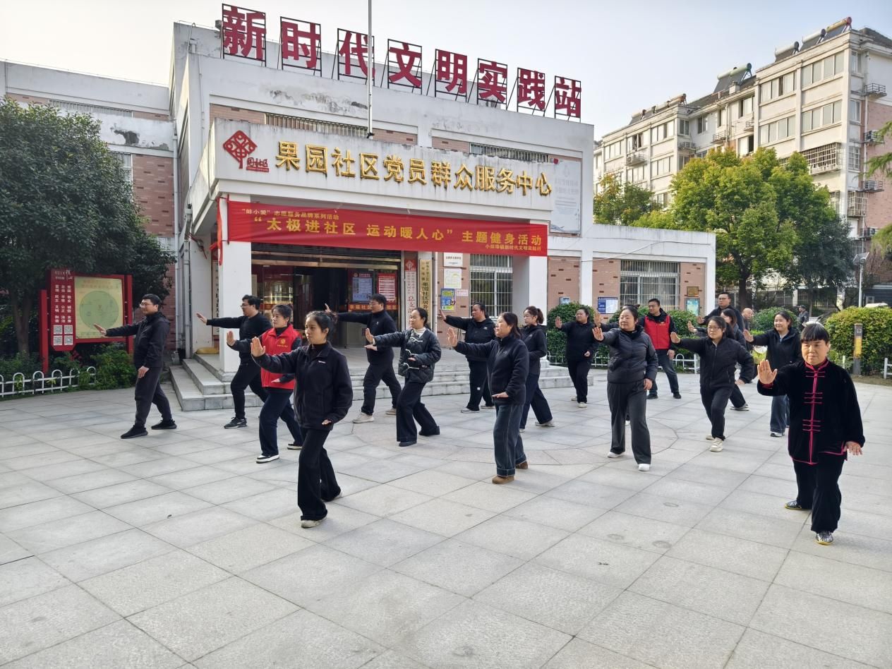 為豐富社區居民的精神文化生活,搭建鄰里交流平臺,11月14日,小蚌埠鎮新時代文明實踐所聯合果園社區新時代文明實踐站開展“蚌小愛”志愿服務品牌系列活動——“太極進社區 運動暖人心”主題健身活動,數十位居民身著舒適運動裝,在專業教練的帶領下,沉浸式感受傳統太極的獨特魅力。
