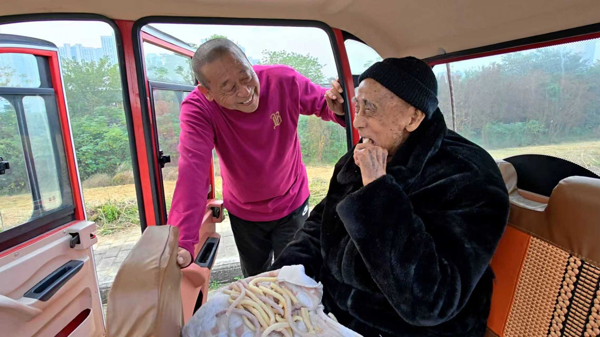2025年11月13日,清晨六點(diǎn)半,蚌埠市淮河南岸浸著初冬的微涼,薄霧未散,堤壩上那輛橙色三輪車旁已傳來繩結(jié)輕響。61歲的劉德才將兩根綠繩套在雙肩,腰背微弓,穩(wěn)穩(wěn)牽引著車輛,車上裹著黑色厚外套的百歲老父親正在小憩。這溫情一幕,已在淮河岸邊寒來暑往連續(xù)上演四年。