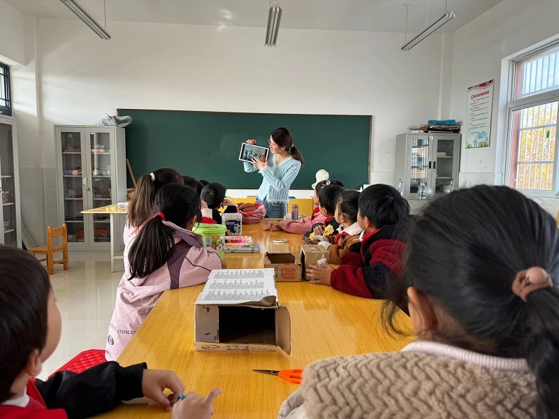 活動前,志愿者和老師們精心準備了干玉米棒、彩筆、黏土、安全剪刀等環保材料,并通過生動講解,幫助孩子們了解玉米的生長過程與實用價值,將自然教育、勞動教育與美育融合,為后續創作打下基礎。在孩子們動手創作前,志愿者還適時引入了“護苗·綠書簽”小課堂,用通俗易懂的語言告訴孩子們,好的創意和書籍一樣,都是我們成長的養分,要像拒絕發霉的玉米一樣自覺遠離有害出版物和信息,多接觸像今天活動一樣健康、綠色的文化內容,讓心靈和創意一起健康成長。