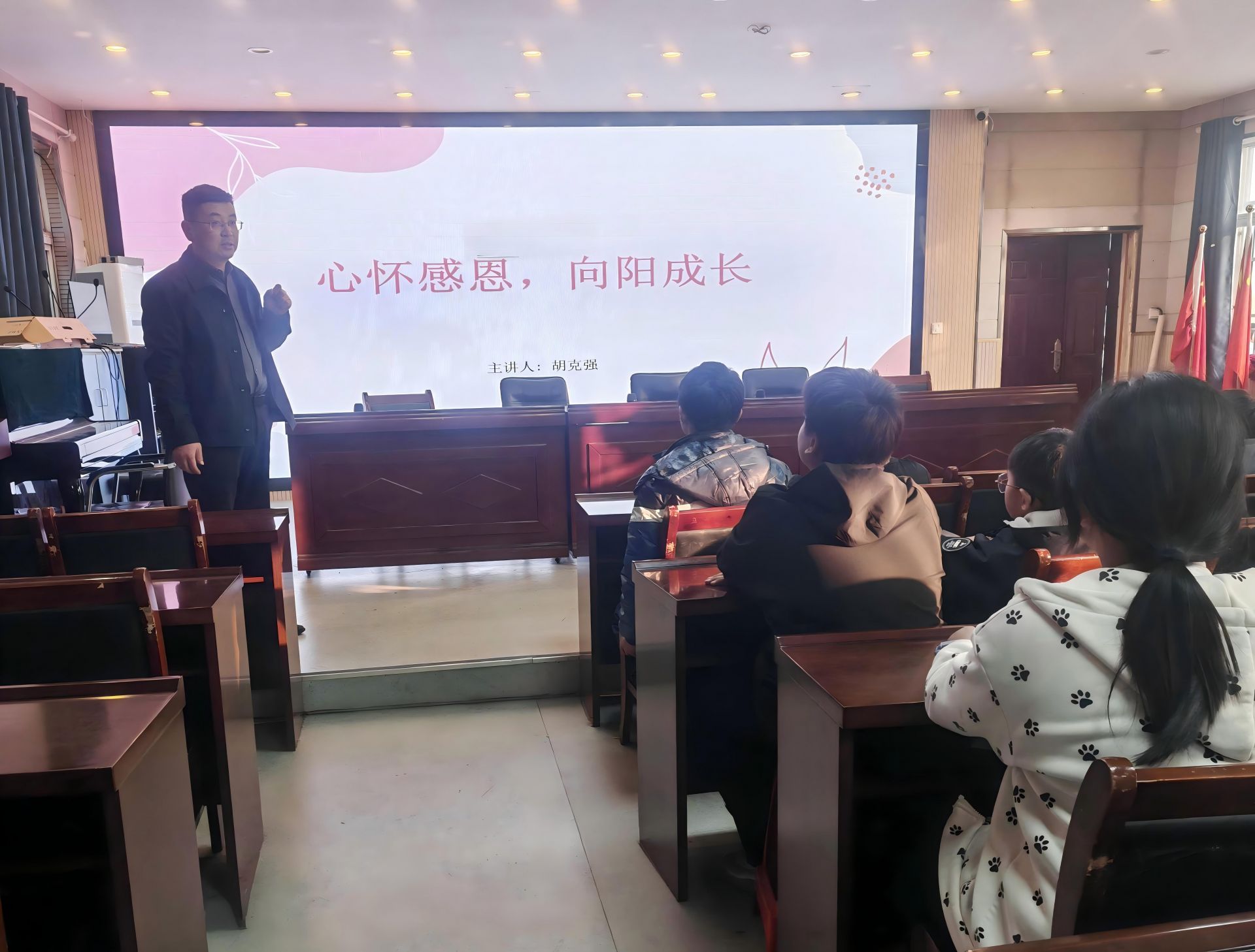 胡克強以“感恩是生命最溫暖的底色”為切入點,結合新時代青少年成長特點,從“感恩父母”“感恩師長”“感恩社會”三個維度展開宣講。他鼓勵學生從身邊小事做起,將感恩之心轉化為“為父母分擔家務”“向老師主動問好”“參與社區志愿服務”等具體行動。