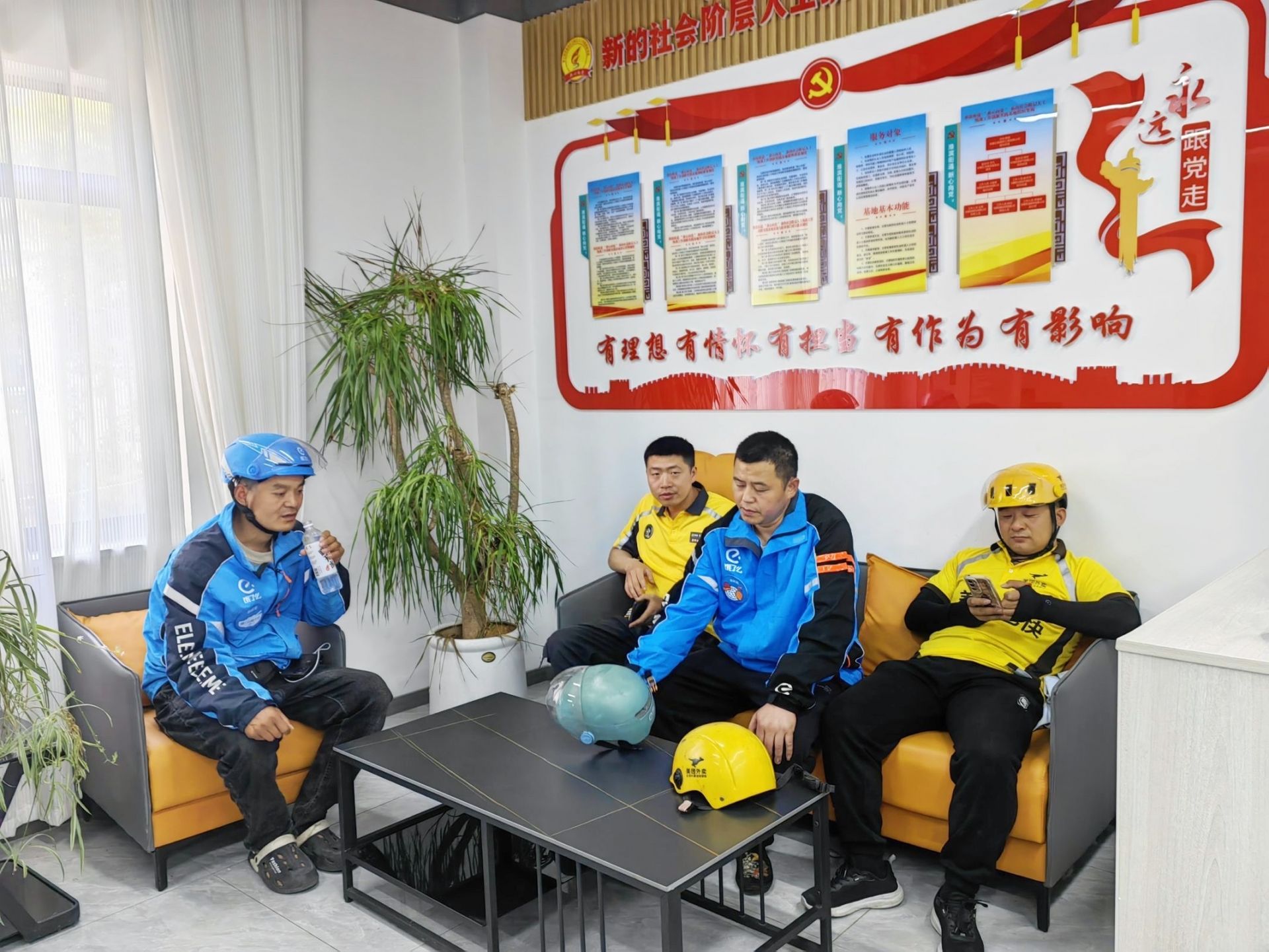 “這里有微波爐熱飯菜,夏天還能喝到冰鎮礦泉水。大門口有標志,高德地圖也能搜到,我們累了就能來歇歇腳。”社區先鋒騎手龐亞飛笑著告訴記者,驛站里設施齊全,在外賣小哥、快遞小哥和出租車司機中很受歡迎。