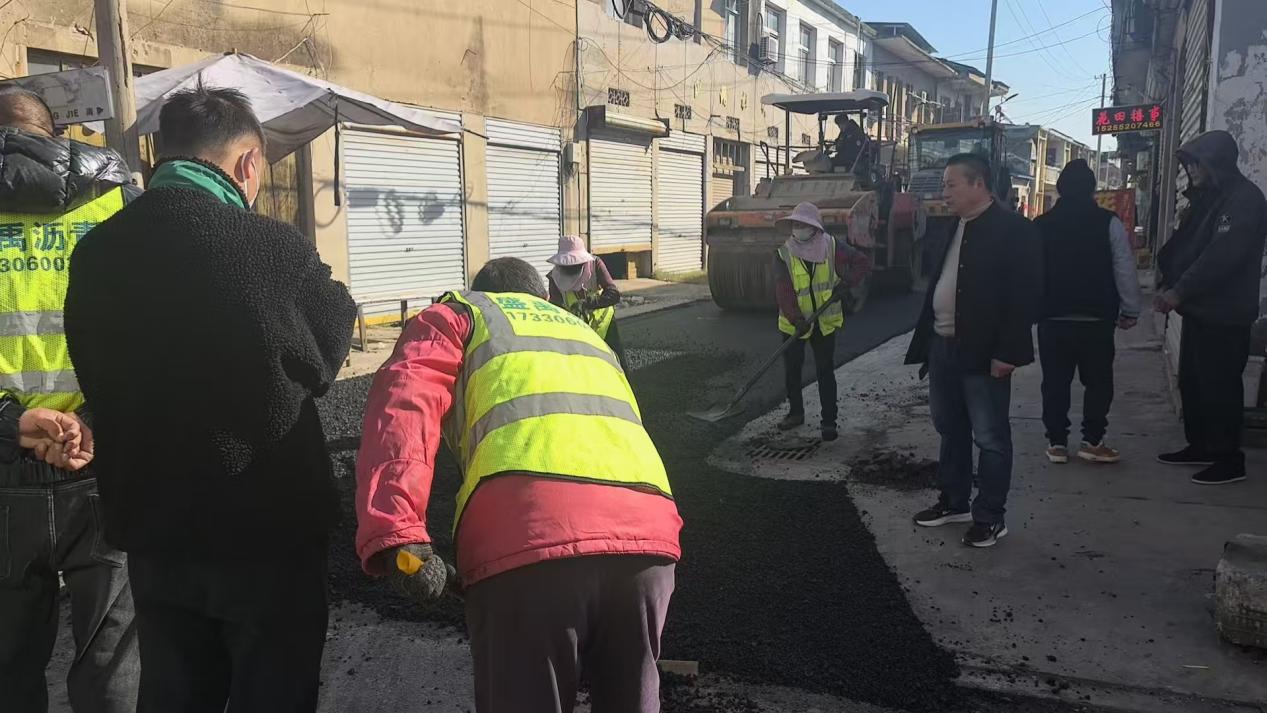 精準摸排尋癥結,傾聽民聲定方案。道路修繕的首要前提是找準問題根源。龍亢村駐村工作隊堅持“腳步丈民情、耳聽百姓聲”,通過走訪發現,文昌街因使用年久,加之過往下水道改造,出現路面破損、坑洼泥濘、積水濕滑等問題,為村民出行帶來安全隱患。工作隊立即聯合村“兩委”開展實地測繪與入戶訪談,累計走訪村民90余戶,收集意見建議30余條,明確修繕需求集中于路面硬化、拓寬與排水優化。在此基礎上,工作隊邀請專業技術人員現場勘測,最終確定鋪設500米瀝青路面、拓寬至4米的方案。