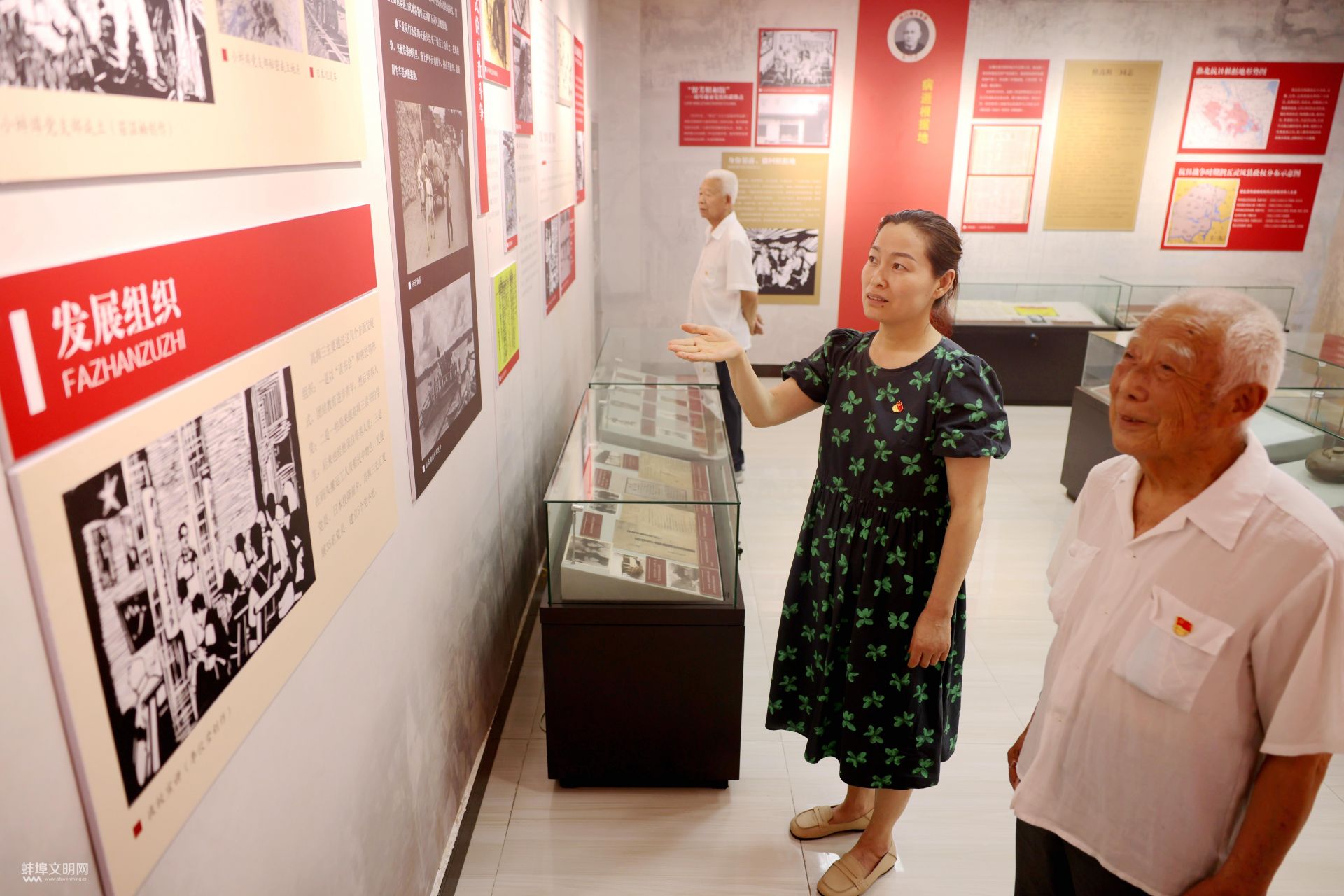 老黨員參觀位于小蚌埠鎮(zhèn)桂花園社區(qū)的中共小蚌埠支部紀(jì)念館。