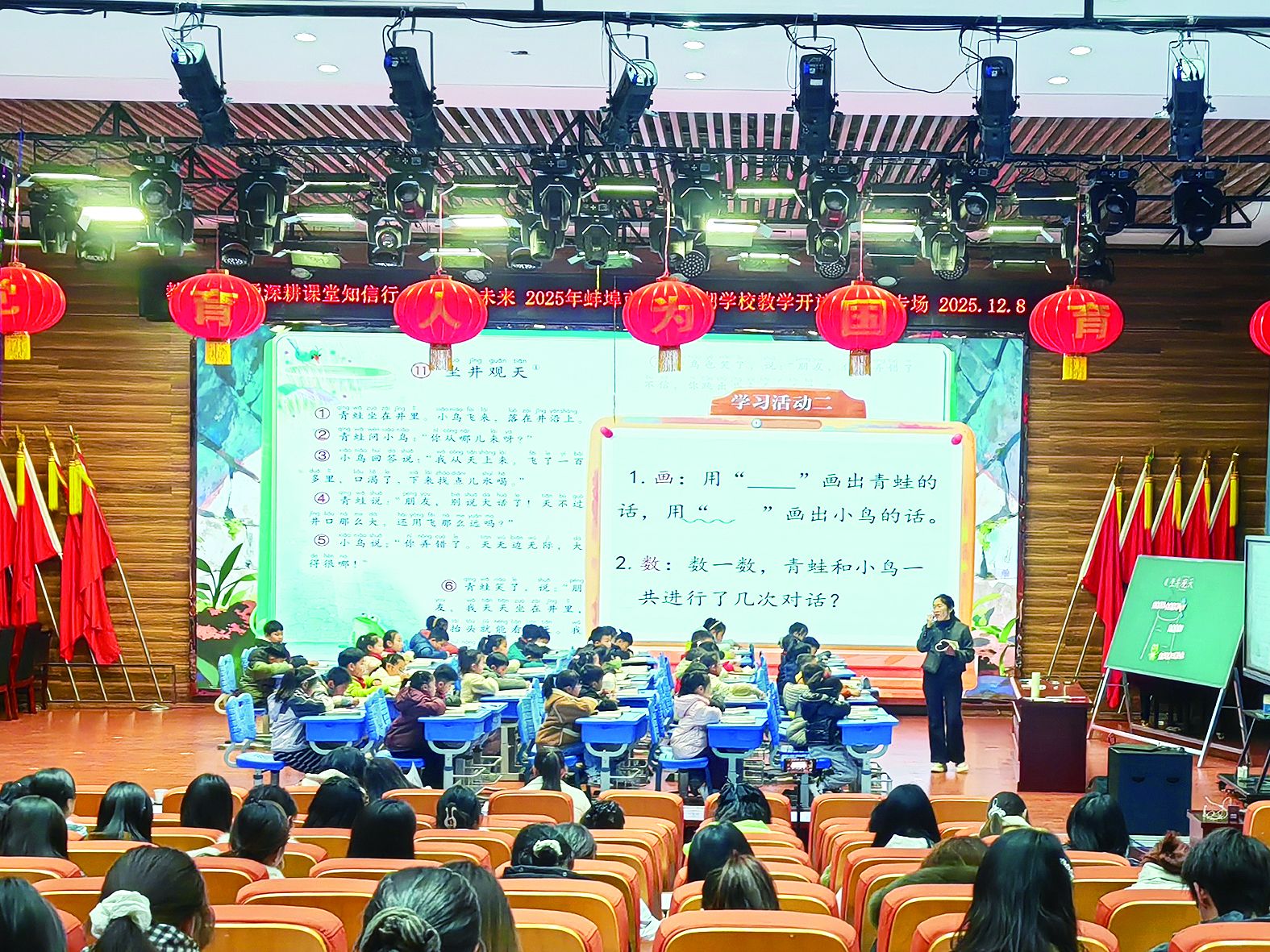 為深化“教學評一致性”實踐探索,推動AI賦能與“三課”融通育人模式創新,搭建校際教研交流共進平臺,近日,蚌埠市新城濱湖學校聯合蚌埠第六中學、蚌埠市濱湖實驗學校、蚌埠市虎山學校、蚌埠高新實驗學校、懷遠實驗中學舉辦“教學開放周”活動,集中展示多學科創新課例,以校際協作之力共探教育高質量發展實踐路徑。周芳林 李潔 攝
