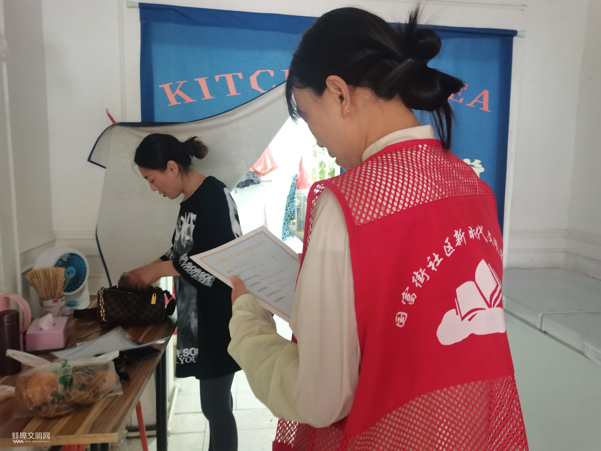 近日,龍子湖區東風街道國富街社區新時代文明實踐站,開展排查小餐飲公示卡健康證工作。曹玉霞 攝