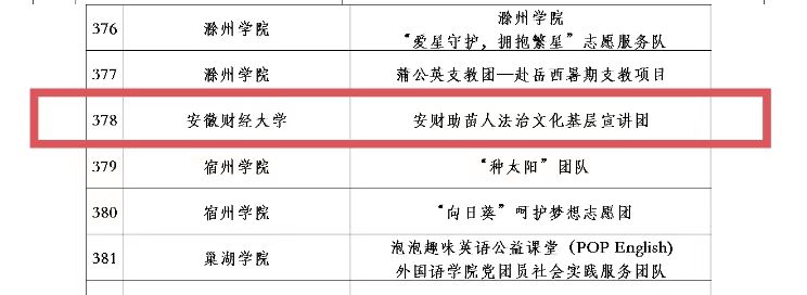蚌埠文明網(wǎng)訊 (融媒體記者 周芳林)近日,團中央青年志愿者行動指導(dǎo)中心、中國青年志愿者協(xié)會秘書處發(fā)布《2023年“七彩假期”志愿服務(wù)示范團隊入選名單》,安徽財經(jīng)大學(xué)法學(xué)院助苗人法治文化宣講團成功入選。