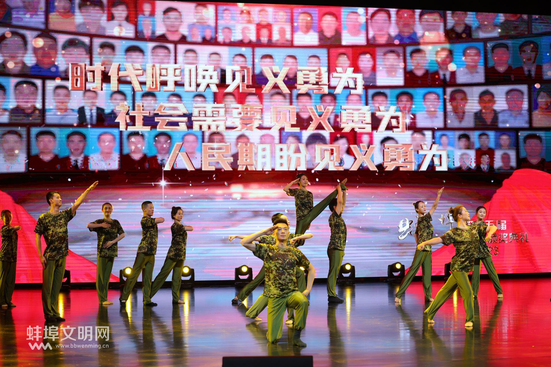 見義勇為、匡扶正義、懲惡揚(yáng)善,是中華民族的傳統(tǒng)美德。2022年2月3日,大年初三,固鎮(zhèn)縣澮河欣城小區(qū)突發(fā)火災(zāi),居住在小區(qū)的張振第一時(shí)間奔赴火災(zāi)現(xiàn)場,在生死抉擇面前,他挺身而出,成功阻止了火勢蔓延,為消防救援贏取了寶貴的時(shí)間,18名群眾得到解救,用生命豎起了一座精神豐碑;面對飛馳而來的汽車,人民教師王家磊奮不顧身救人,被撞斷17根肋骨,命懸一線;王恒樹在黑暗里面對歹徒,狂追不舍最終在路人的幫助下成功制服歹徒……一個(gè)個(gè)閃耀的名字,一串串感人的事跡,像一盞盞明燈照耀著我們的心靈,深深感染了現(xiàn)場觀眾。