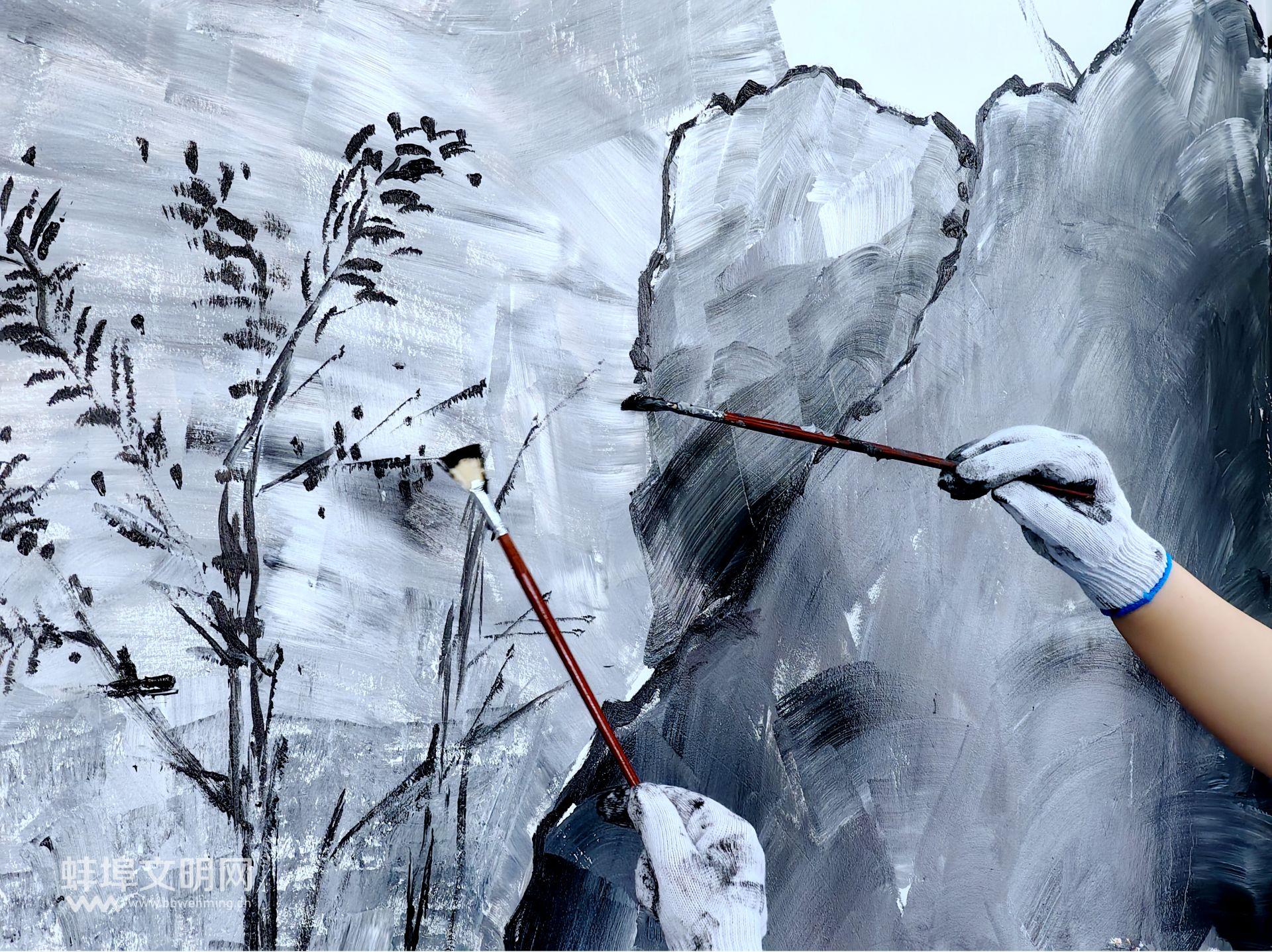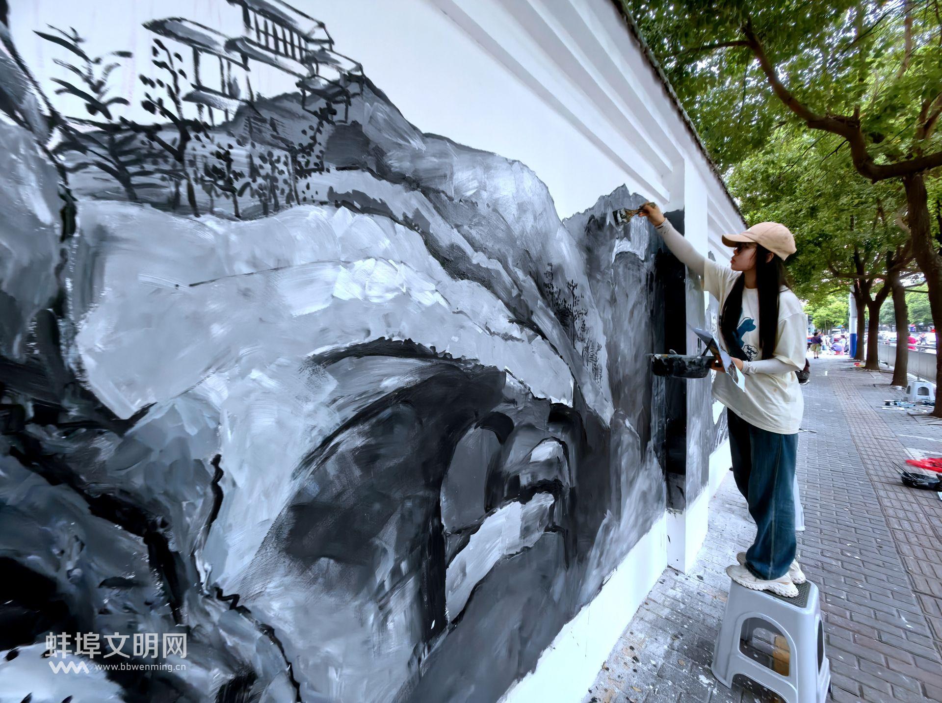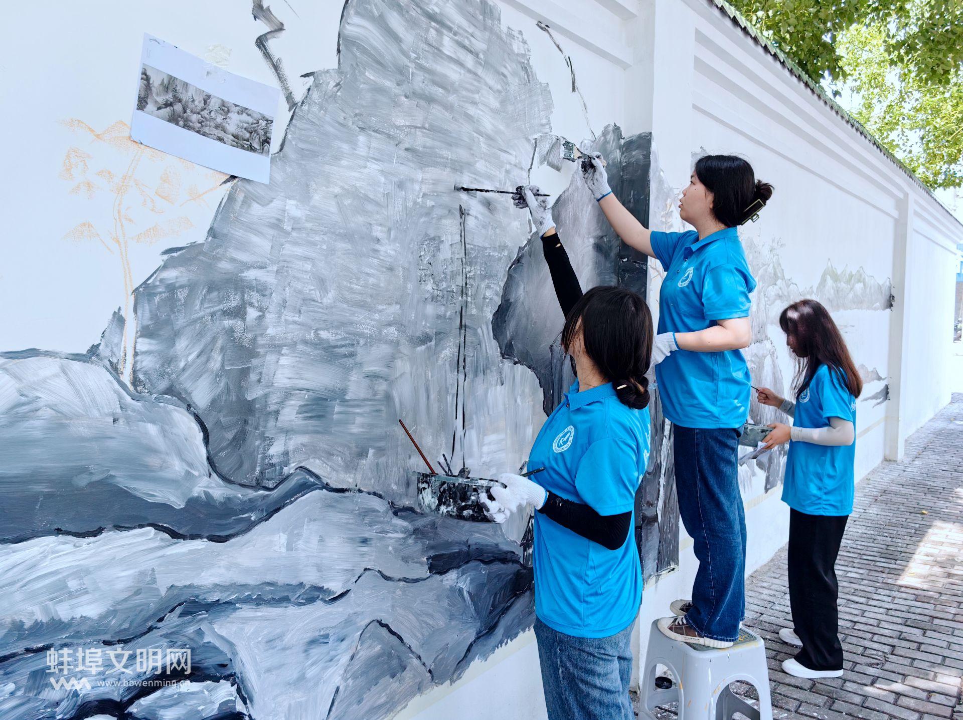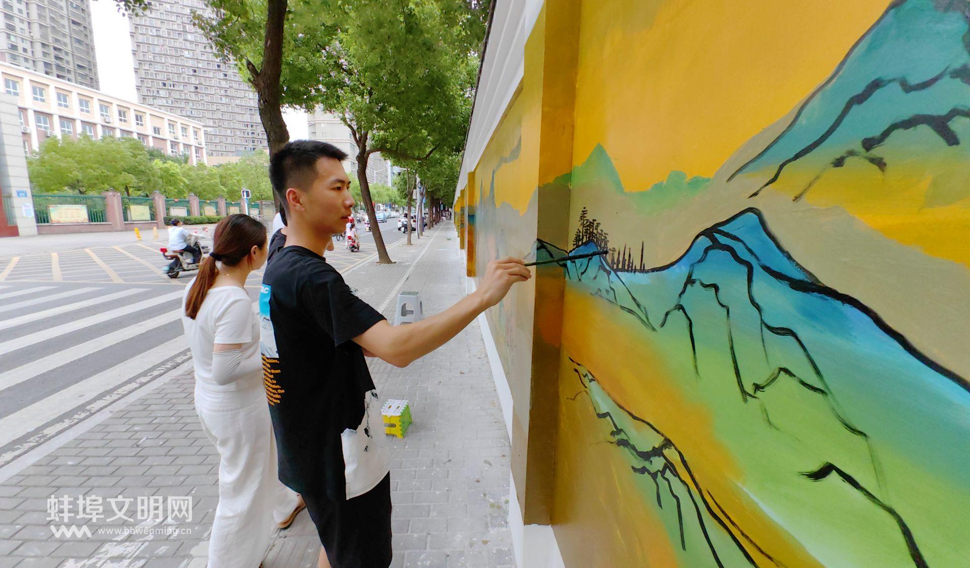 蚌埠文明網訊 近日,安徽財經大學藝術學院與蚌山區文明辦合作,組織了一場暑期社會實踐活動。在體育路西段,20多名藝術學院的大學生克服酷暑,共同參與了文化墻的繪制。他們在一面200多米長的墻上創作了三幅長卷,靈感來自于古代名畫。其中中間一幅是北宋畫家王希孟《千里江山圖》,兩邊為元代畫家黃公望《富春山居圖》和清代畫家龔賢的《千巖萬壑圖》。這些大學生們充分運用自己平時所學的技能,為體育路增添了一道美麗的景觀,受到了市民的點贊!(融媒體記者 陳昂 文/圖)
