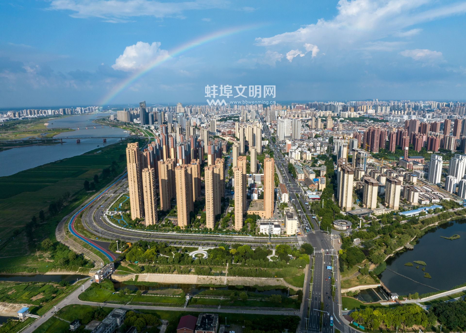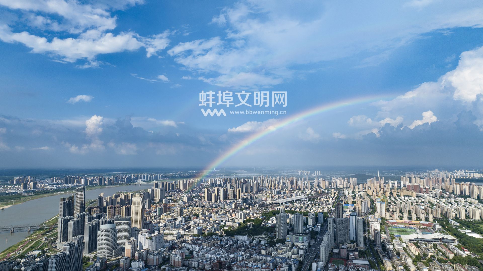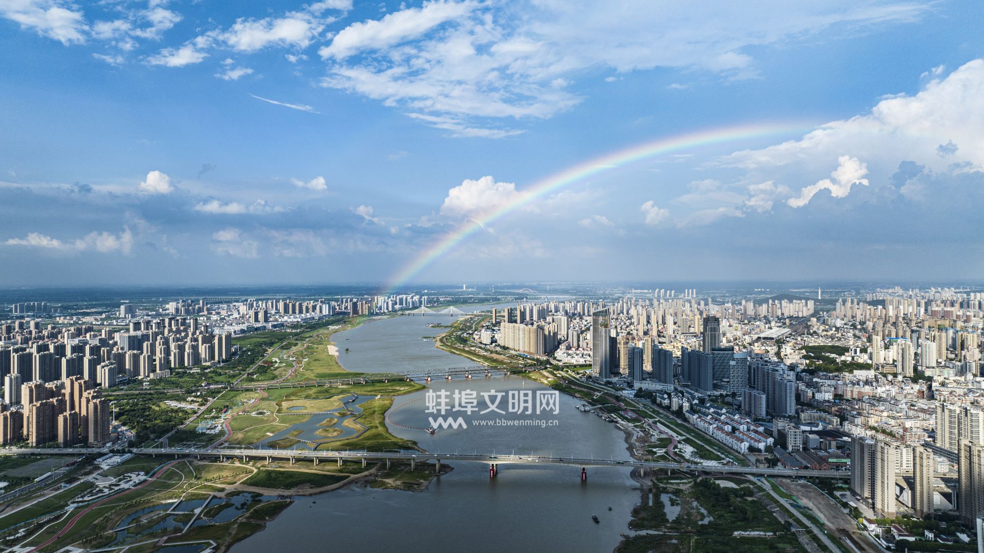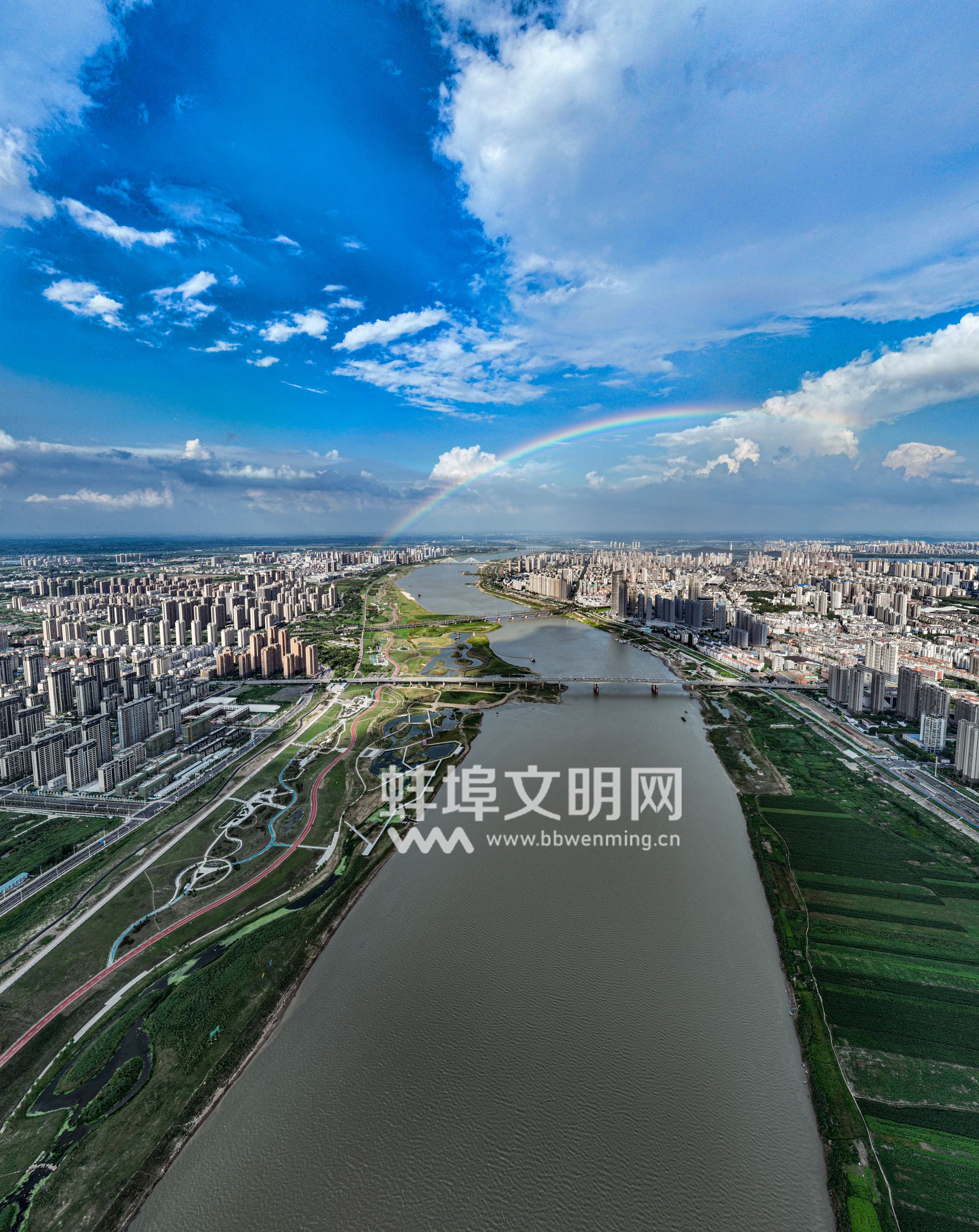 7月27日下午,一場陣雨后,淮河上空驚現彩虹奇觀,絢麗多彩,美不勝收。(蚌埠日報融媒體記者 陳昂 通訊員 崔德密 攝)