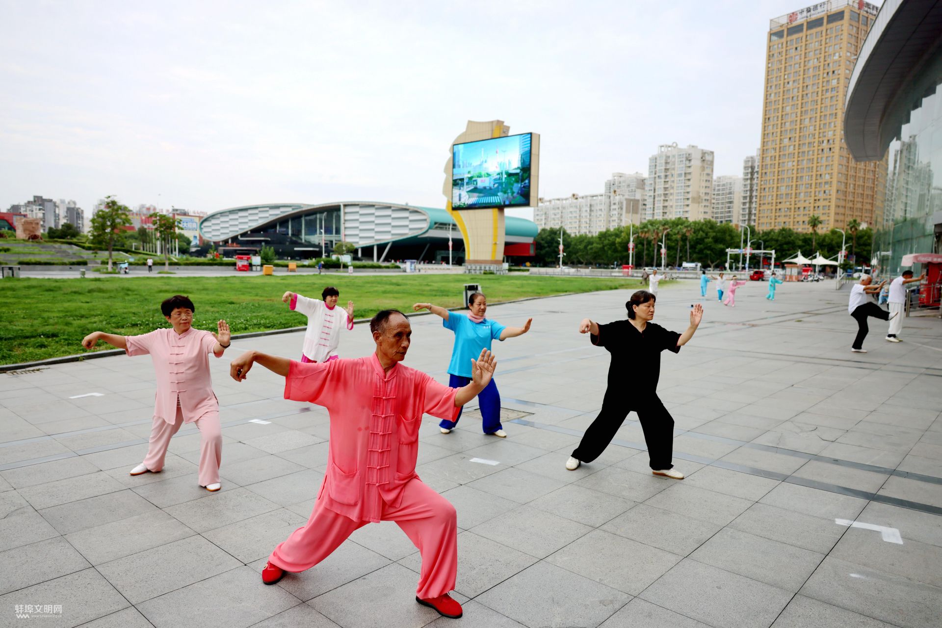 7月31日,市民在淮河文化廣場(chǎng)打太極拳。