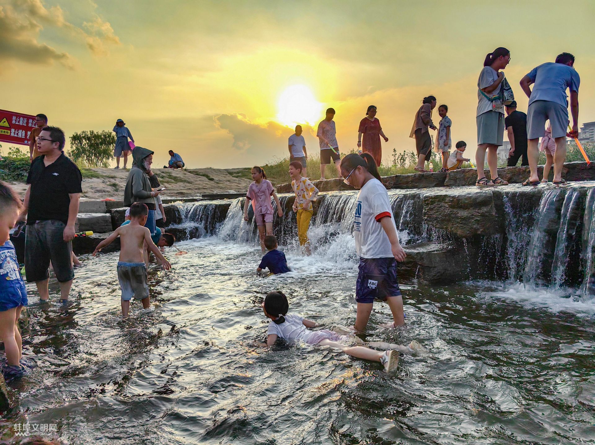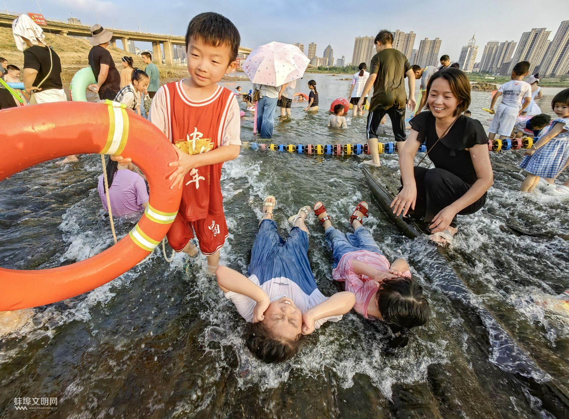 8月5日傍晚,靚淮河北岸朝陽路淮河公路橋西側(cè)尾水疊瀑熱鬧非凡,眾多孩子在家人的陪伴下戲水玩樂,讓這里成了夏日避暑的網(wǎng)紅打卡地。融媒體記者 陳昂 攝
