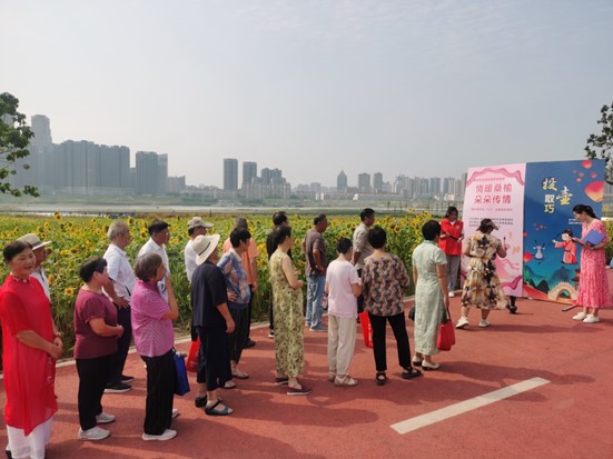為弘揚和傳承中華傳統民俗文化,增添節日喜慶氛圍,8月18日上午,由淮上區淮濱街道新時代文明實踐所主辦、正街社區新時代文明實踐站承辦的“情暖桑榆 朵朵傳情”“我們的節日·七夕”主題文化活動在靚淮河向日葵景區開展。