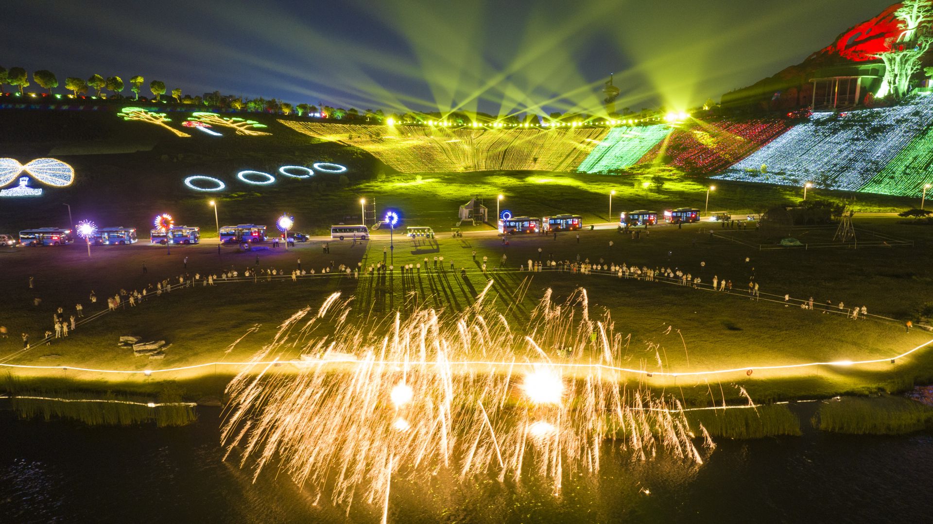 夜幕降臨,華燈初上,中國蚌埠古民居博覽園上演“明月幻境”大型國潮光影秀,為蚌埠再添一處夜游網紅打卡地。絢麗多彩的動態燈光秀,點亮了夏日夜空,成為一道新的景觀。 融媒體記者 陳昂 攝
