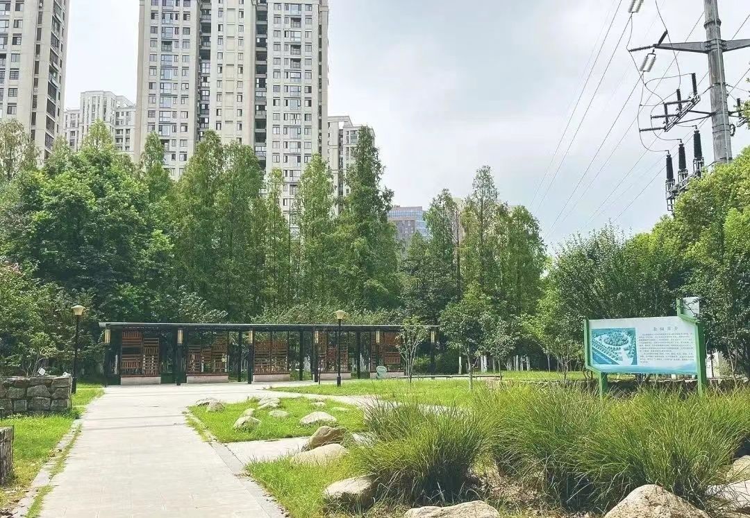 其實,位于涂山路這條“軸線”上的街頭游園不只一處。航華路與涂山路東南角交口還有一座風景如畫的“口袋公園”。