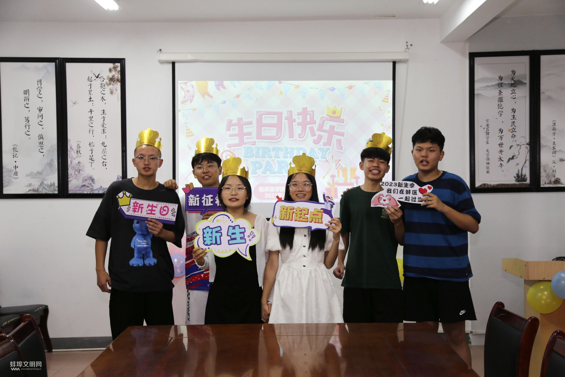 “今天是同學們的生日,也是大家進入蚌埠醫學院,開始向醫學高峰攀登的第一天。學校專門給大家準備了生日會,祝同學們生日快樂,學業順利!”在修葺一新的四食堂里,插著蠟燭的蛋糕已經擺好:每個顏色的蠟燭各一根,寓意大學五彩繽紛的生活即將拉開帷幕。校黨委學工部、學生工作處副處長宋松一番簡單的開場白,就招呼大家切蛋糕:“吃過蛋糕,大家肯定會終生銘記來蚌醫報到那一天是8月26日啦!”