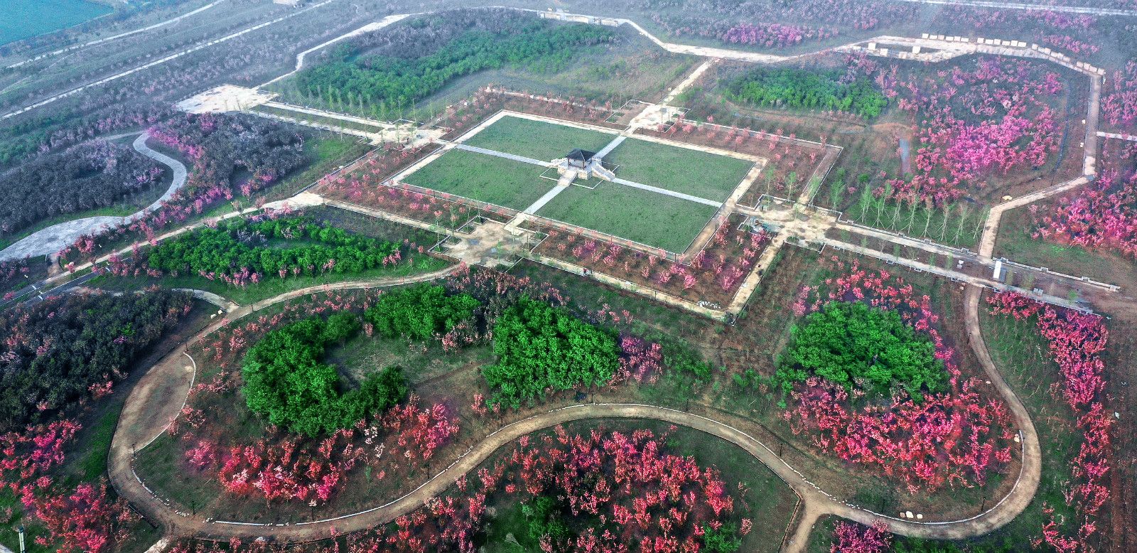 五彩繽紛的谷陽城遺址公園(櫻花園)。