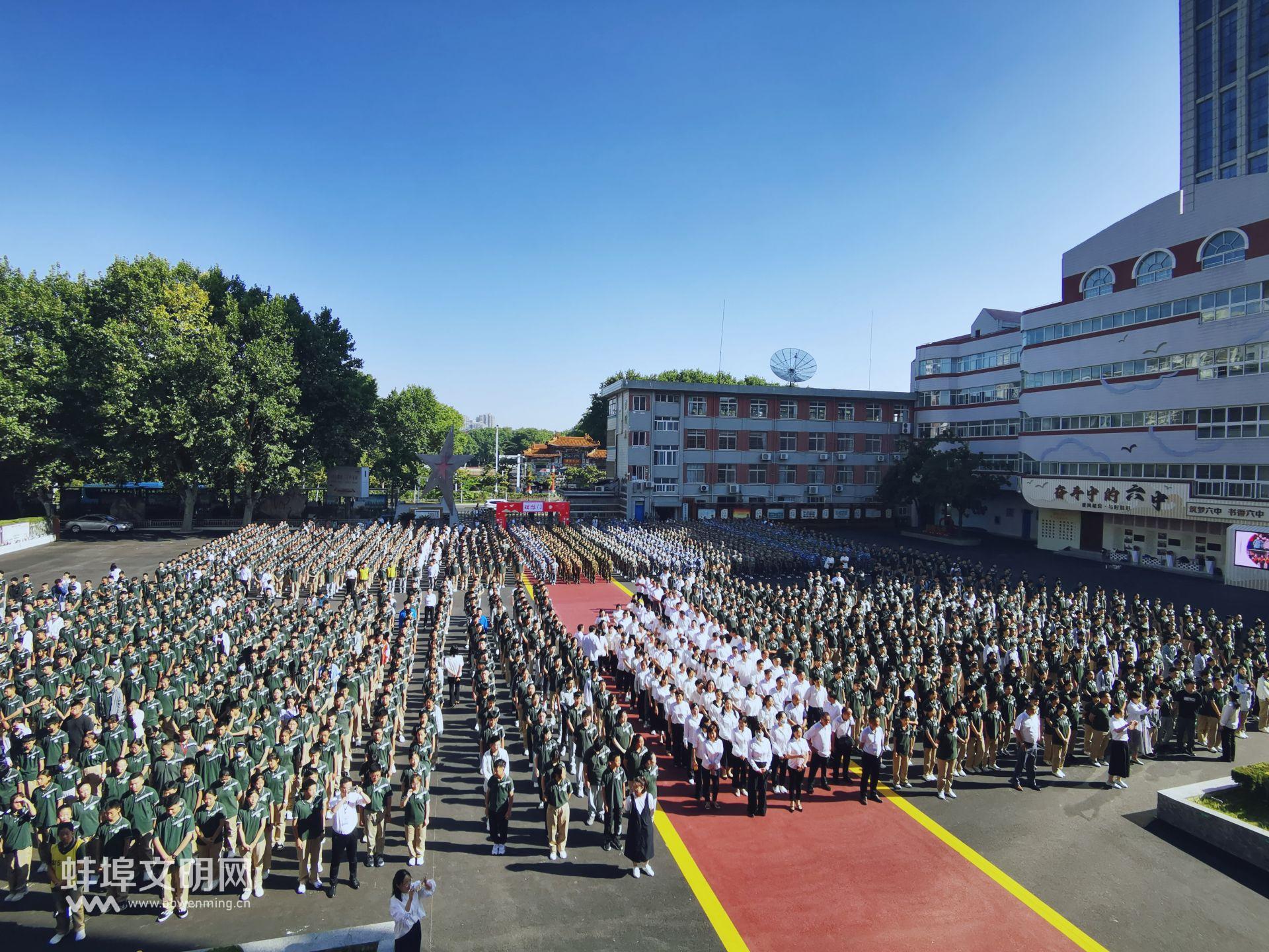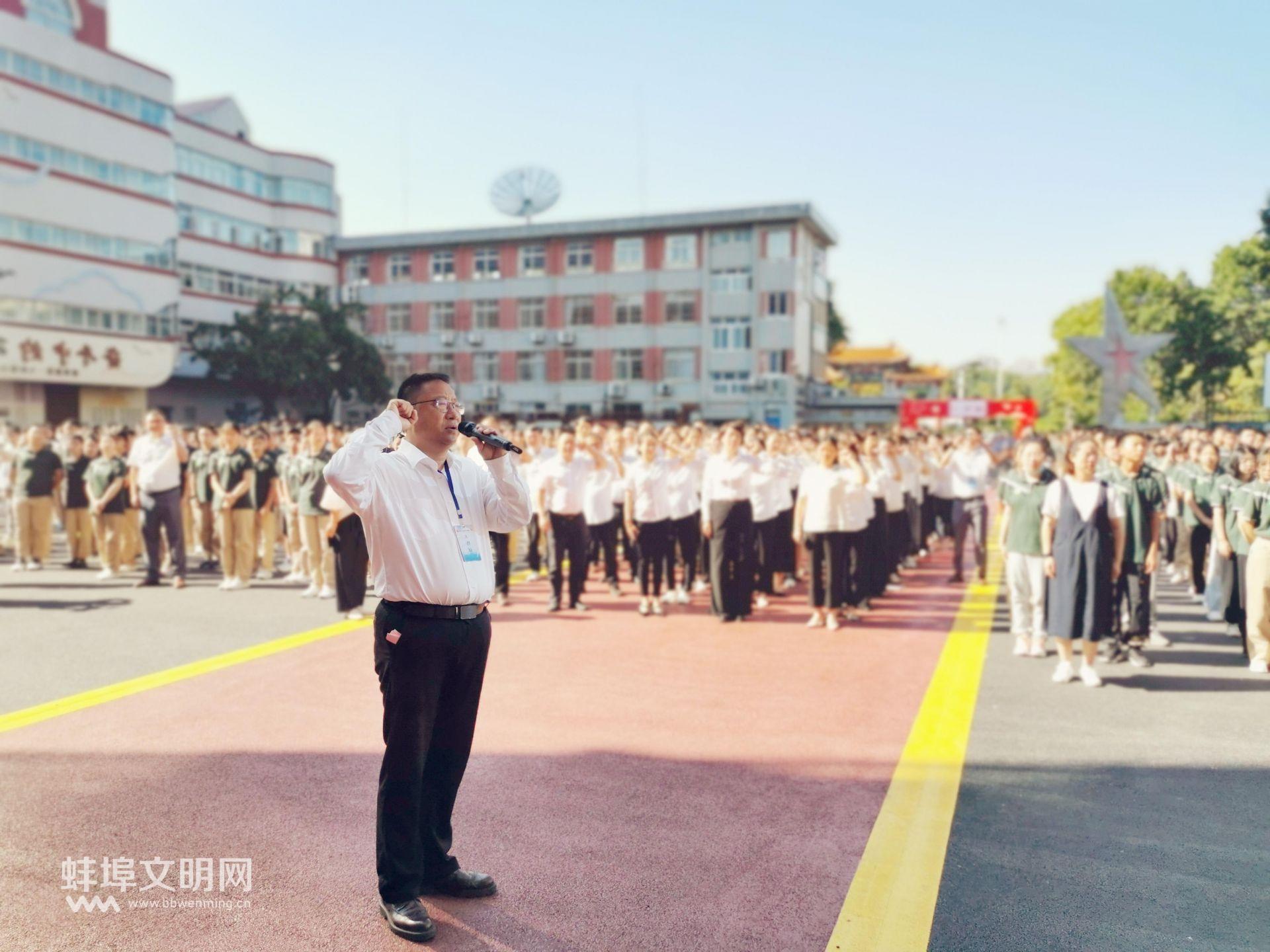 下午4時,蚌埠六中全體師生齊聚教學樓前廣場,隆重舉行2023-2024學年秋季開學典禮暨慶祝第39個教師節(jié)大會。伴隨著五星紅旗冉冉升起,伴隨著高亢激昂的國歌,活動拉開帷幕。大會由校辦公室宋超同志主持。