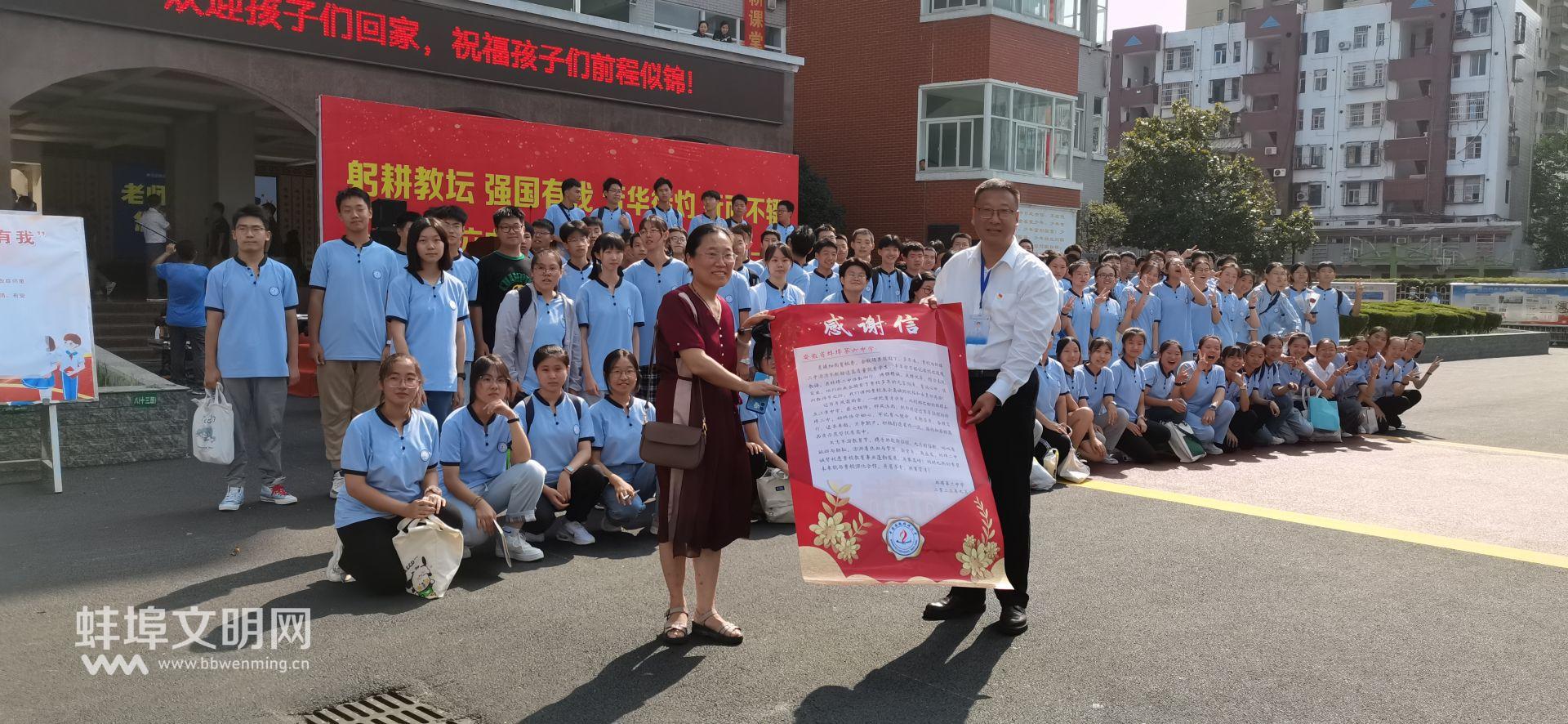 9月8日清晨,蚌埠六中黨總支書記、校長解大柱同志攜全體行政干部,手持鮮花,列隊校門兩側(cè),為老師們送上教師節(jié)的祝福。束束鮮花展笑顏,聲聲問候潤心田。