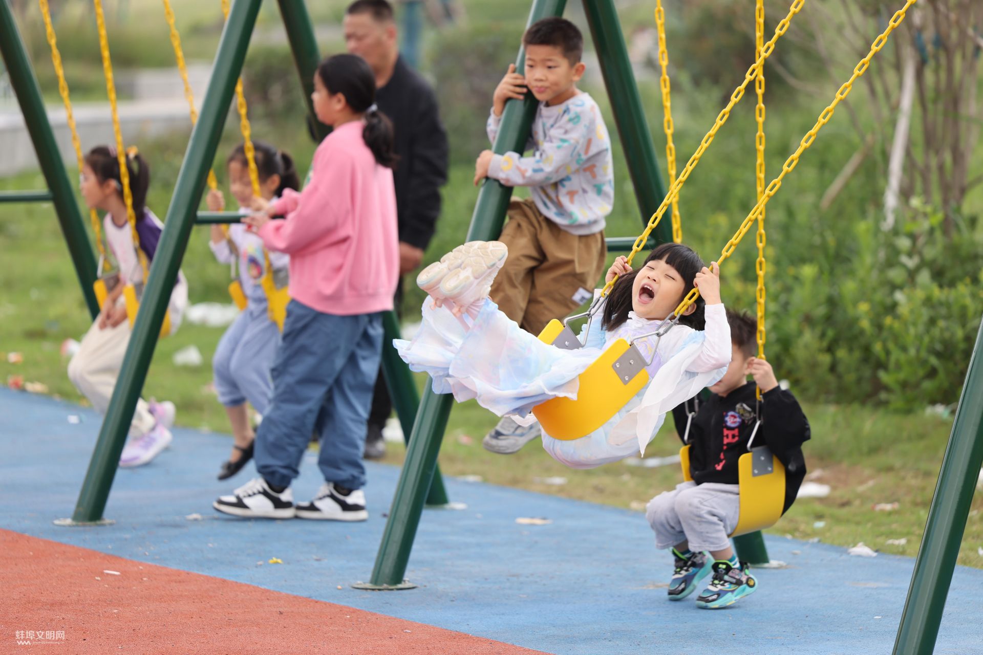 “靚淮河”工程南岸解放二路北段岸邊游樂場格外熱鬧,多功能滑梯、秋千、沙池、蹺蹺板等設施,受到孩子和家長的青睞。