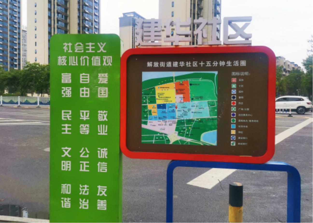 解放街道建華社區十五分鐘生活圈示意圖標明了各種功能區