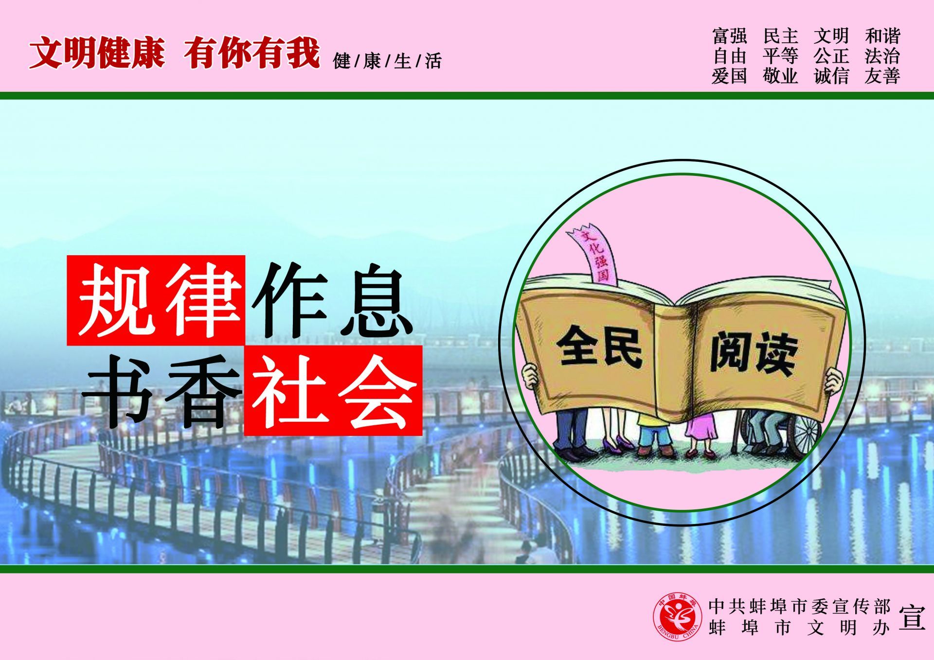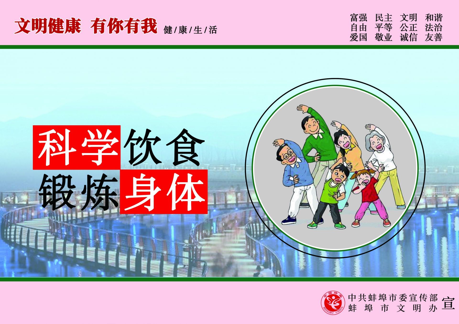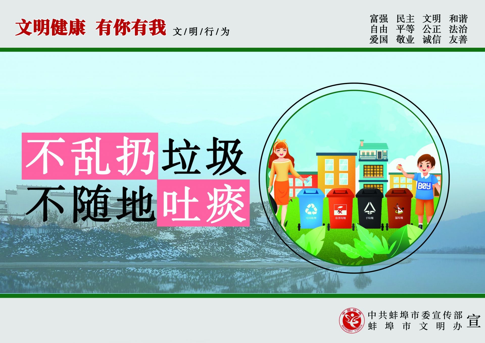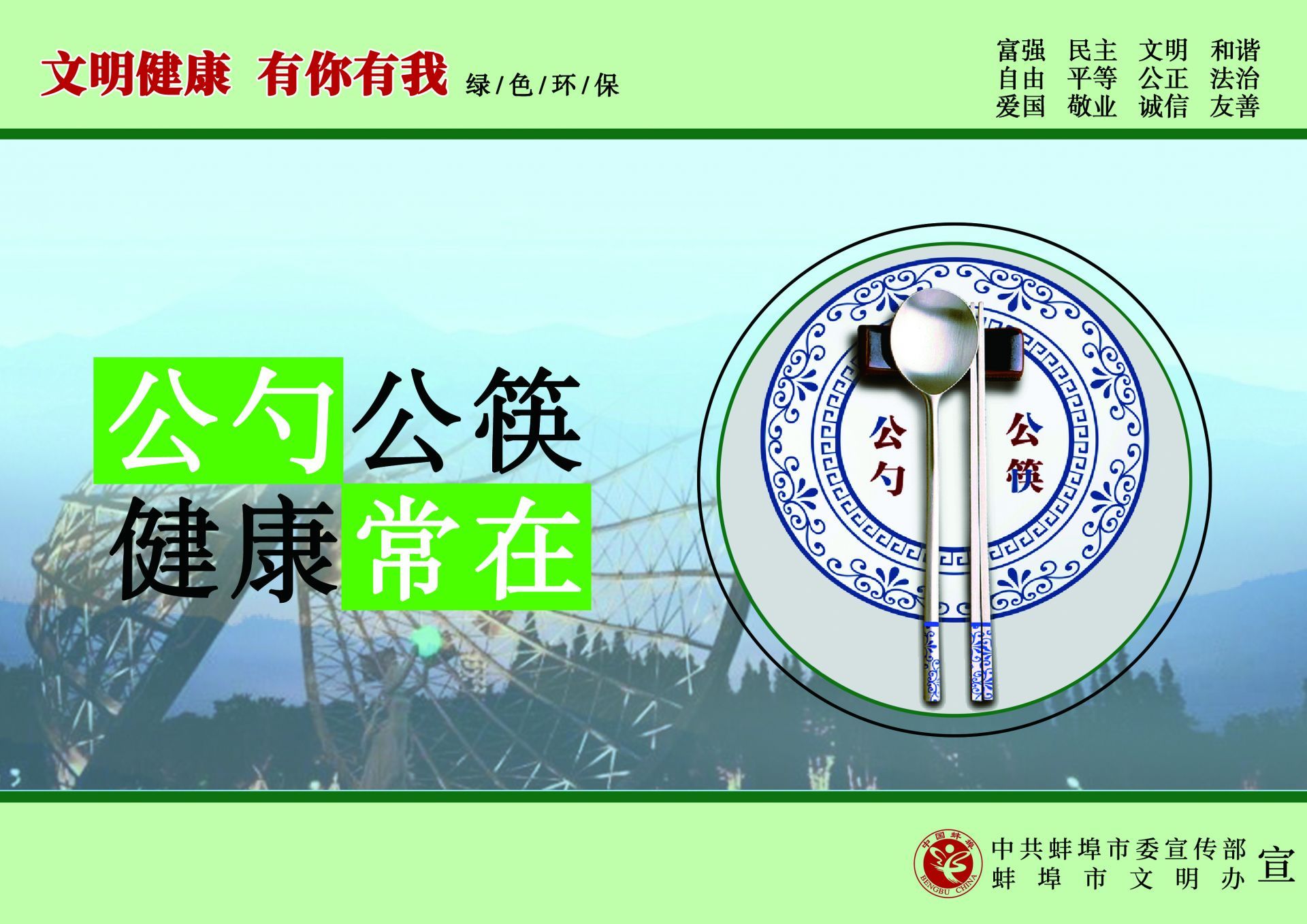 為傳播文明理念、弘揚時代新風,根據中央文明辦《關于開展“文明健康 有你有我”公益廣告宣傳行動的函》的通知精神,中共蚌埠市委宣傳部、蚌埠市文明辦在全市組織開展了“文明健康 有你有我”公益廣告宣傳行動,動員專業和業余美術工作者全力投入設計,廣泛征集作品,用公益廣告傳播文明理念、弘揚時代新風,助力文明城市創建。