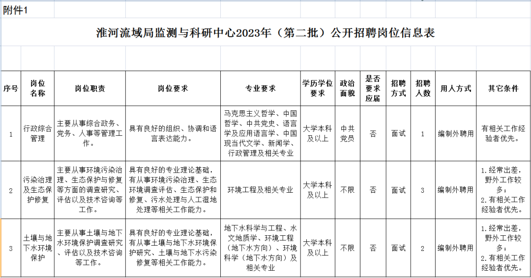 淮河流域局監(jiān)測與科研中心擬招聘的崗位、專業(yè)、學歷、人數(shù)及其他條件詳見附件1。