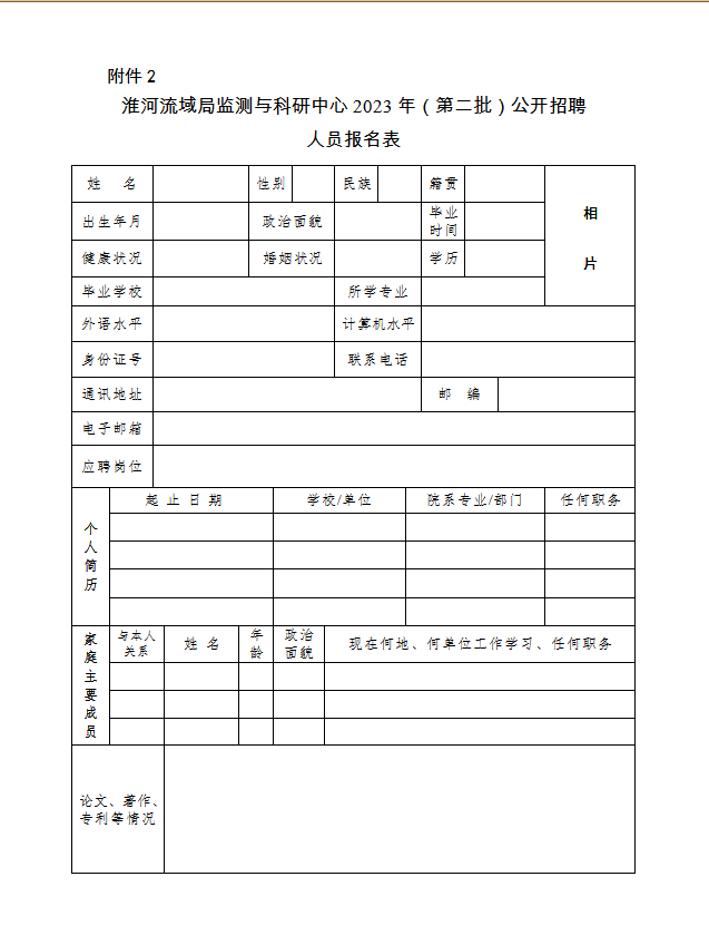 本次招聘采取網(wǎng)絡報名方式,考生可于2023年5月6日至2023年5月26日期間,登錄生態(tài)環(huán)境部淮河流域生態(tài)環(huán)境監(jiān)督管理局門戶網(wǎng)站(http://huaihejg.mee.gov.cn/)下載并填寫《淮河流域局監(jiān)測與科研中心2023年(第二批)公開招聘人員報名表》(附件2,文件命名為崗位+姓名+報名表),《淮河流域局監(jiān)測與科研中心2023年(第二批)公開招聘報名人員信息匯總表》(附件3,文件命名為崗位+姓名+匯總表),將報名表、匯總表電子版和報名表、身份證、學歷學位證書或所在學校簽字蓋章的畢業(yè)生就業(yè)推薦表、代表性論著和獲獎證書等相關材料掃描件于2023年5月26日前壓縮打包發(fā)送至jczx@huaihejg.mee.gov.cn電子郵箱,壓縮包名稱和郵件主題均為:崗位名稱+姓名。每位應聘者僅限報一個崗位。