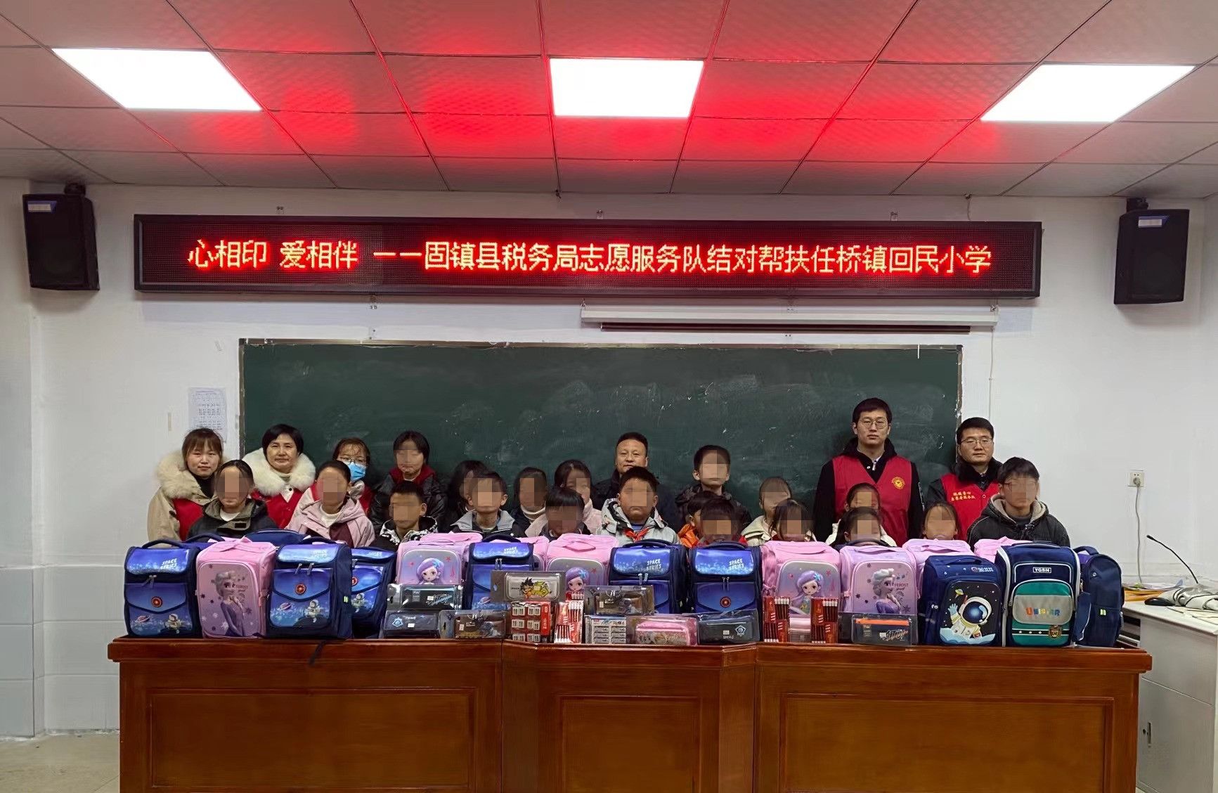 為深入推進民族團結工作,切實為少數民族群眾做實事,讓少數民族群眾和學生感受到社會的關懷和溫暖,12月15日上午,固鎮縣稅務局組織志愿者赴定點幫扶任橋鎮回民小學開展“心相印 愛相伴”公益活動。