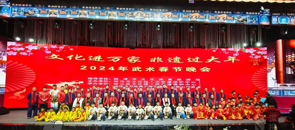 為進一步傳承和弘揚中華優秀武術文化,展示蚌埠市武術界近年來的研習成果,增強珠城百姓對非物質文化遺產的保護意識,“文化進萬家 非遺過大年”2024 年武術春節晚會匯聚眾多珠城武術名家后起之秀,于1月13日在金滿樓大酒店圓滿舉行。