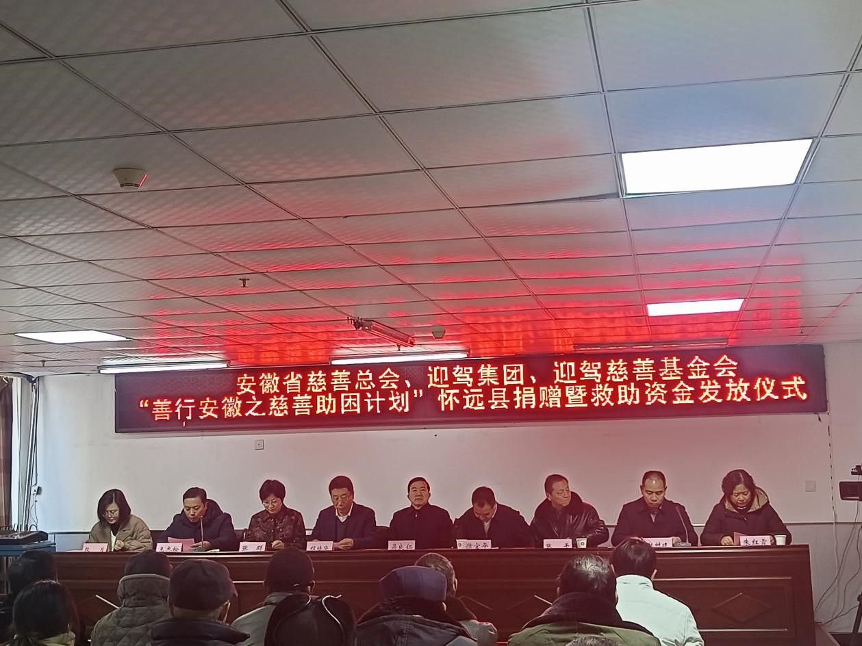 1月24日,“善行安徽之慈善助困計(jì)劃”懷遠(yuǎn)縣捐贈(zèng)儀式在縣民政局社會(huì)福利院會(huì)議室舉行。安徽省行政學(xué)院原黨委書記、常務(wù)副院長、省慈善總會(huì)副會(huì)長吳良仁同志;省民政廳二級巡視員、省慈善總會(huì)副會(huì)長兼秘書長濮宜平;迎駕慈善基金會(huì)理事長程培華、懷遠(yuǎn)縣人民政府副縣長趙樹建出席會(huì)議,懷遠(yuǎn)縣民政局負(fù)責(zé)人主持會(huì)議。