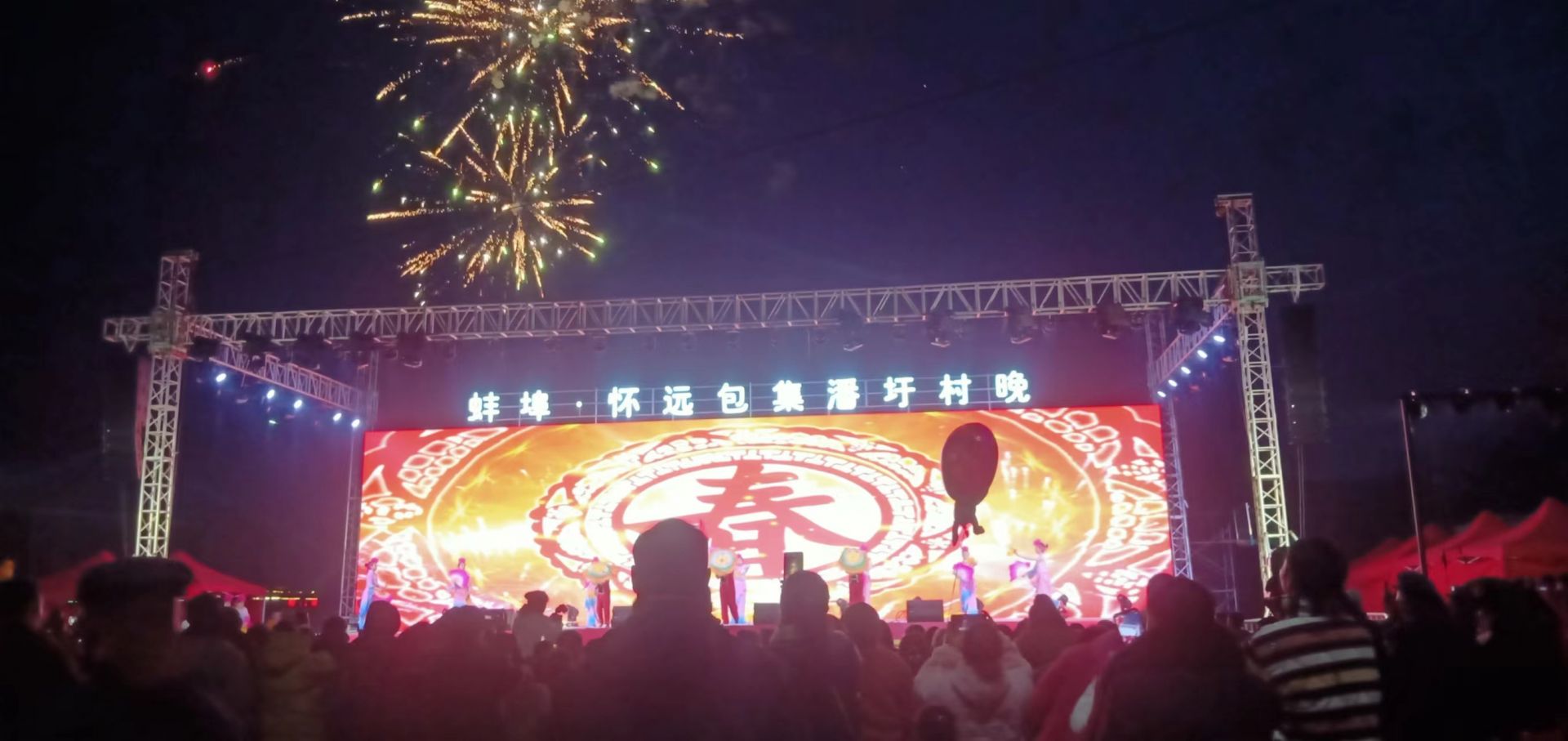 炫彩的舞臺、大屏幕投影、精彩的節目、絢爛的煙花、如潮的觀眾…… 1月29日,懷遠縣包集鎮潘圩村舉辦鄉村村晚,吸引大量村民駐足觀看。