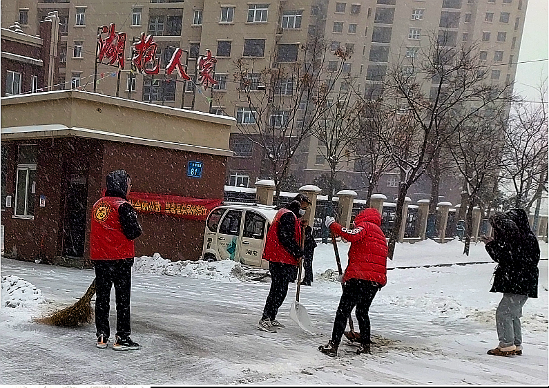 火紅的馬甲、皚皚的白雪猶如畫家筆下濃墨淡彩的丹青佳作,黨建的引領、全員的參與就是一心為民最好的寫照。通過清掃奮戰,小區路通了、院凈了,小區業主的出行安全也得到保障了。(劉超)