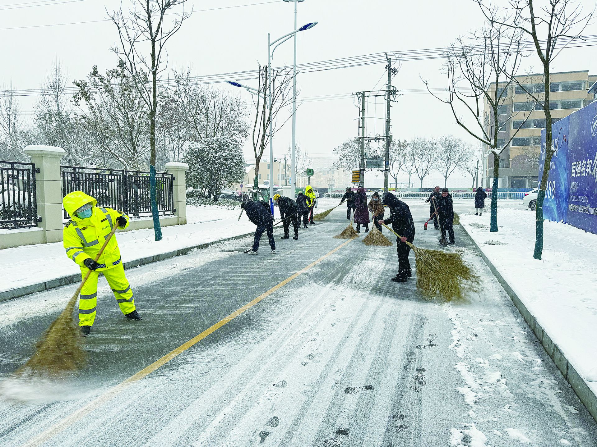 固鎮縣交通運輸綜合行政執法大隊全體執法人員清掃積雪路段