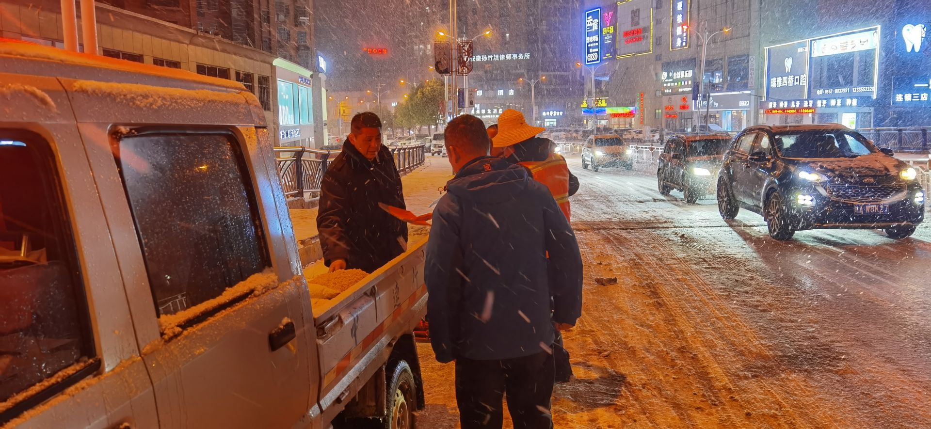 凌晨領導指揮除雪工作