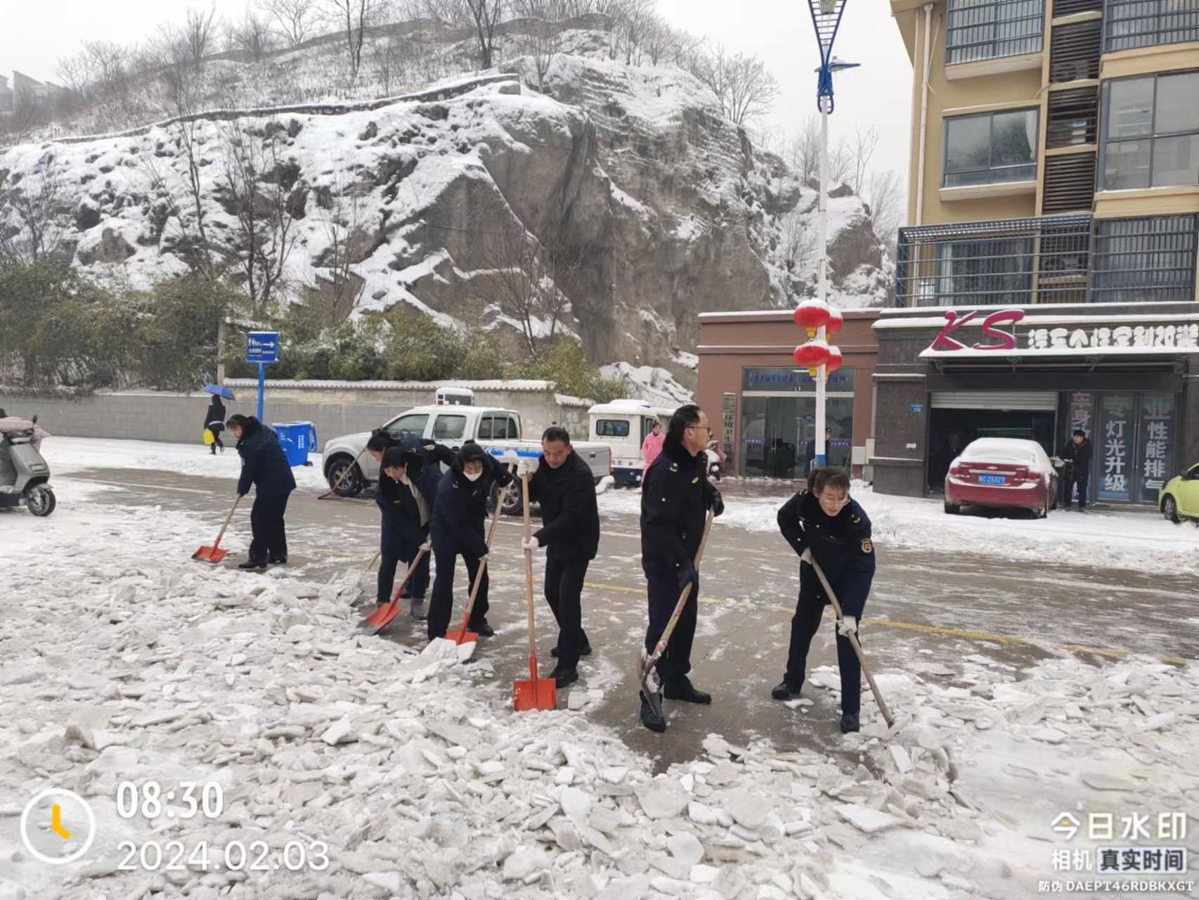 執法隊員人員清掃路面積雪